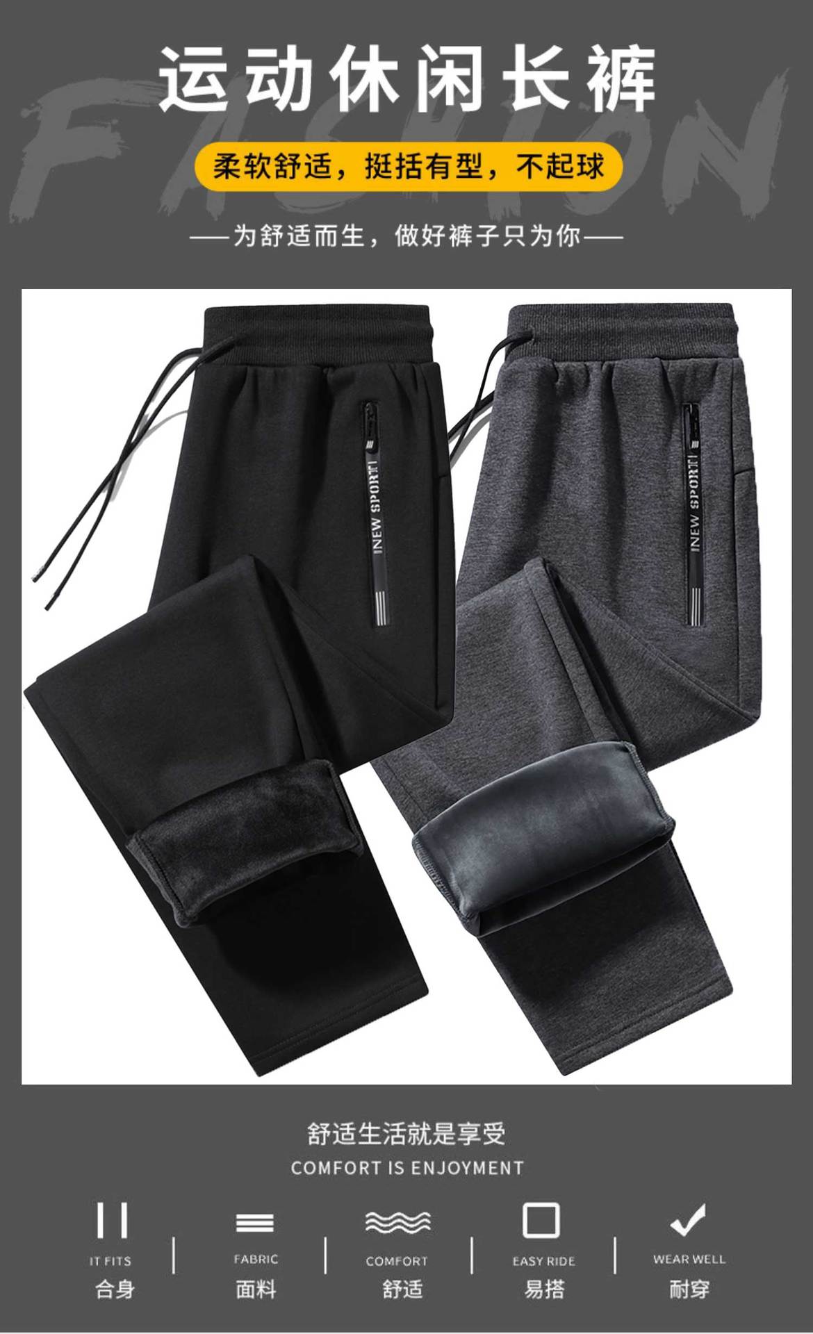 봄, 가을, 겨울용 기모 안감 두꺼운 스웨트팬츠, 루즈핏 일자핏 캐주얼 롱팬츠, 인스 스타일 남성 스포츠 팬츠, 봄가을용