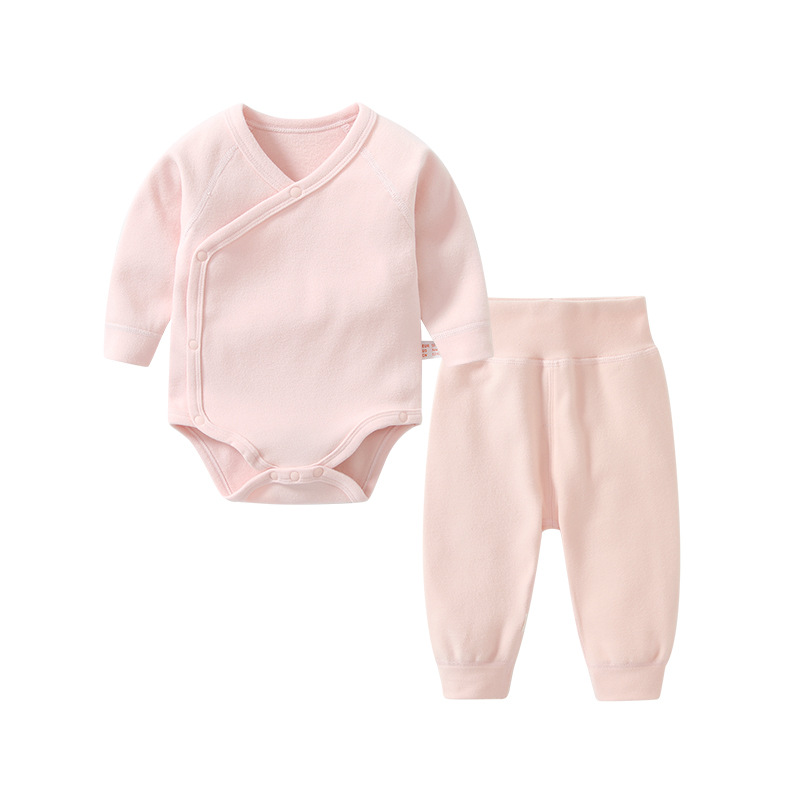 새로 태어난 아기의 벨벳 부분 가슴 하 코트 방귀 랩 따뜻한 세트 가을과 겨울 아기의 높은 허리 배 보호 가을 바지 근접스토어 가기