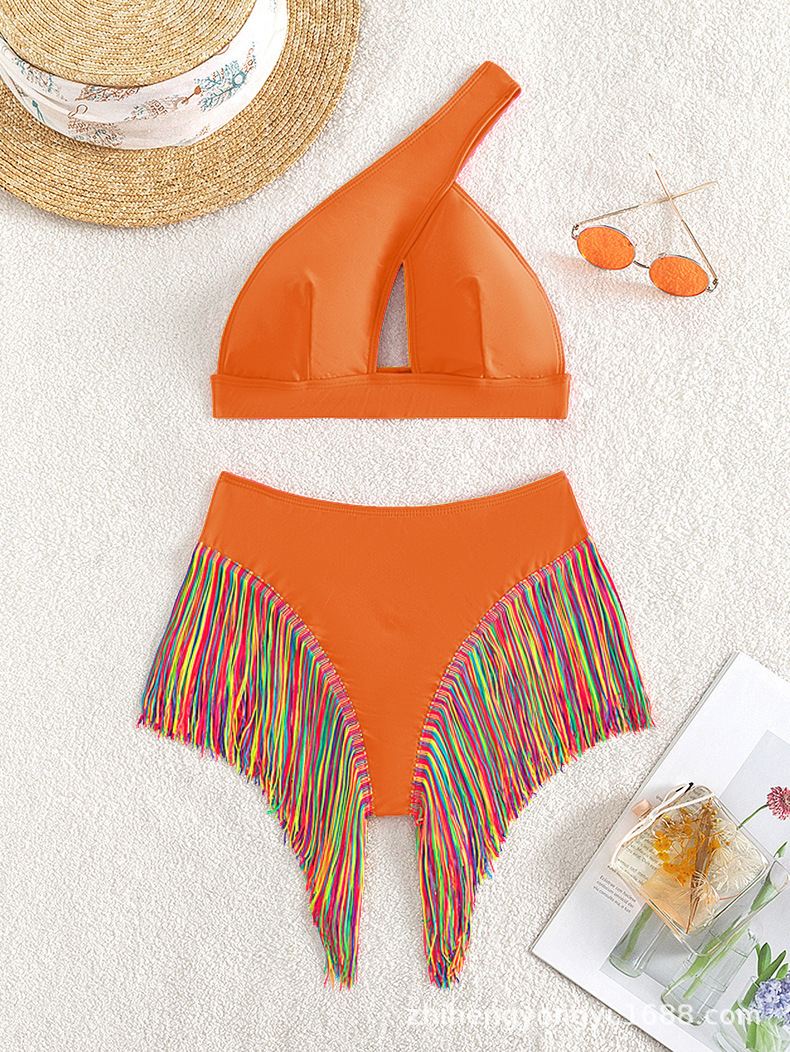 2023 새로운 대외 무역 비키니 섹시한 수영복 여성용 단색 어깨 술 수영복 유럽과 미국 수영복