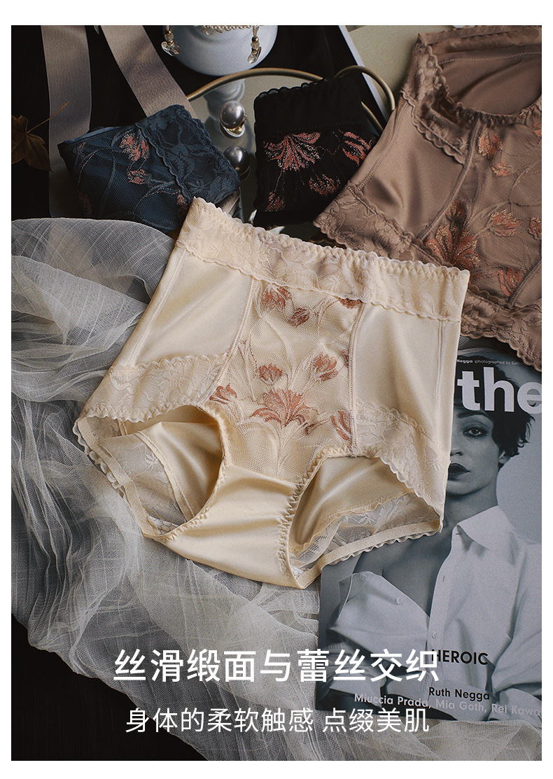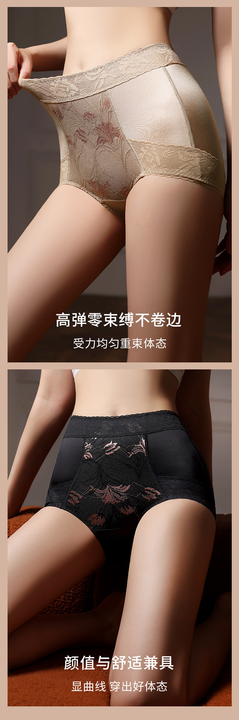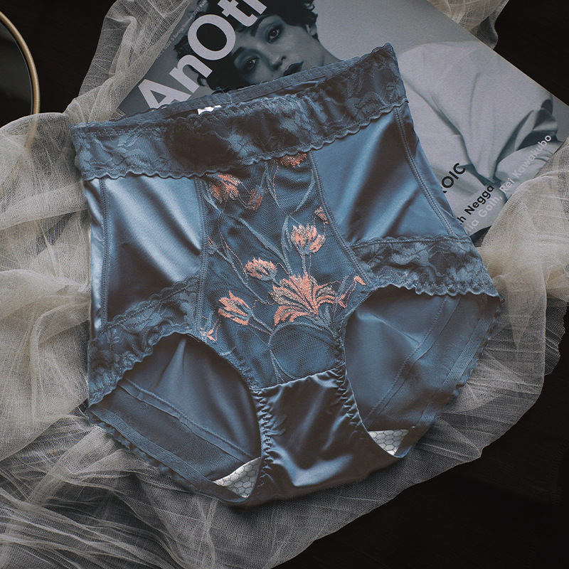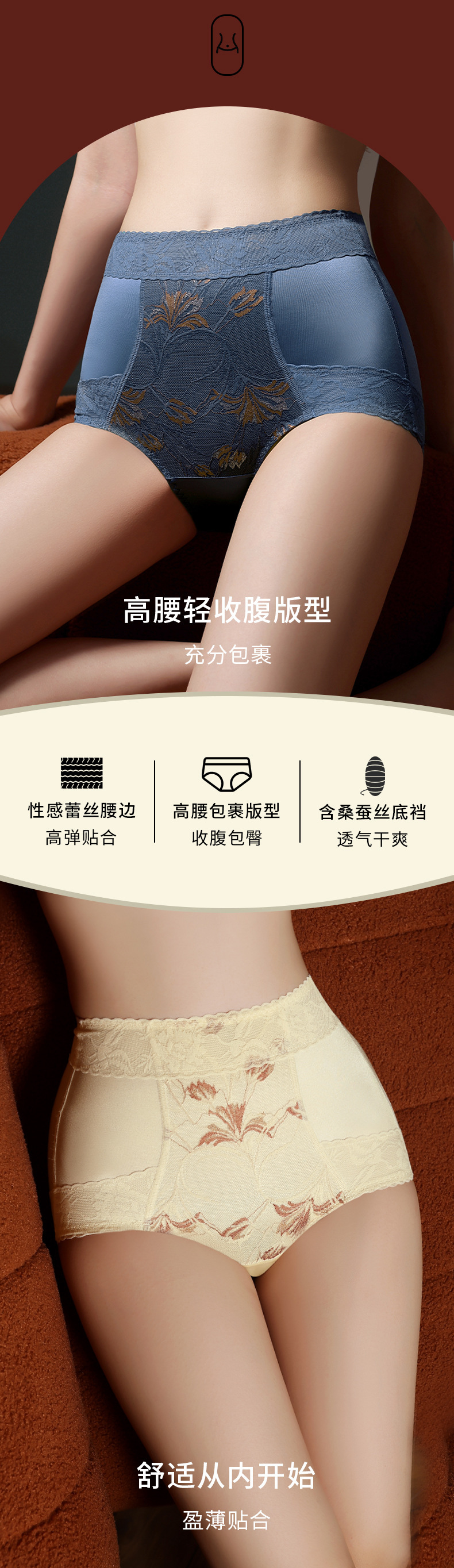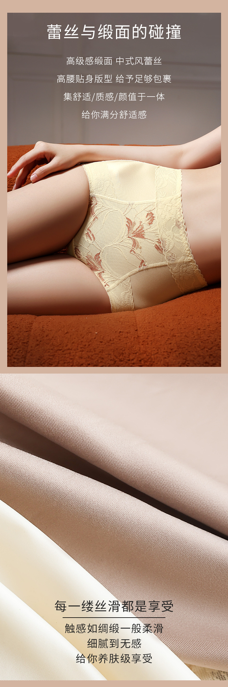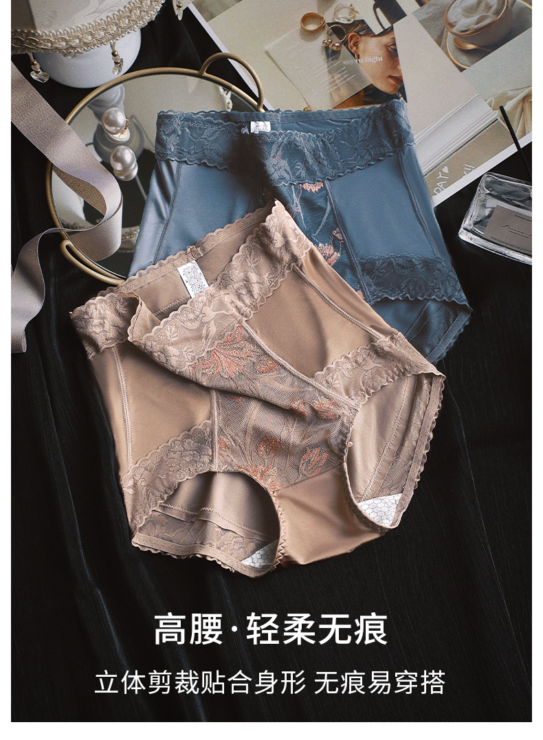 하이 웨이스트 실키 새틴 레이스 속옷 여성용 항균 가랑이 삼각형 아이스 실크 섹시한 배꼽 반바지 여름 얇은스토어 가기