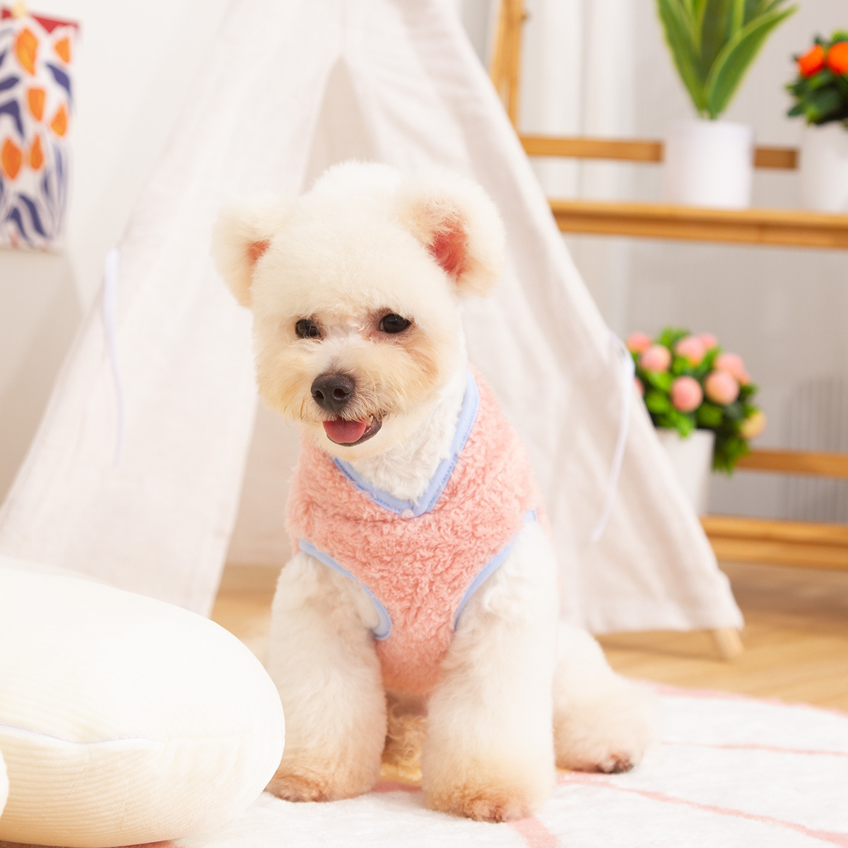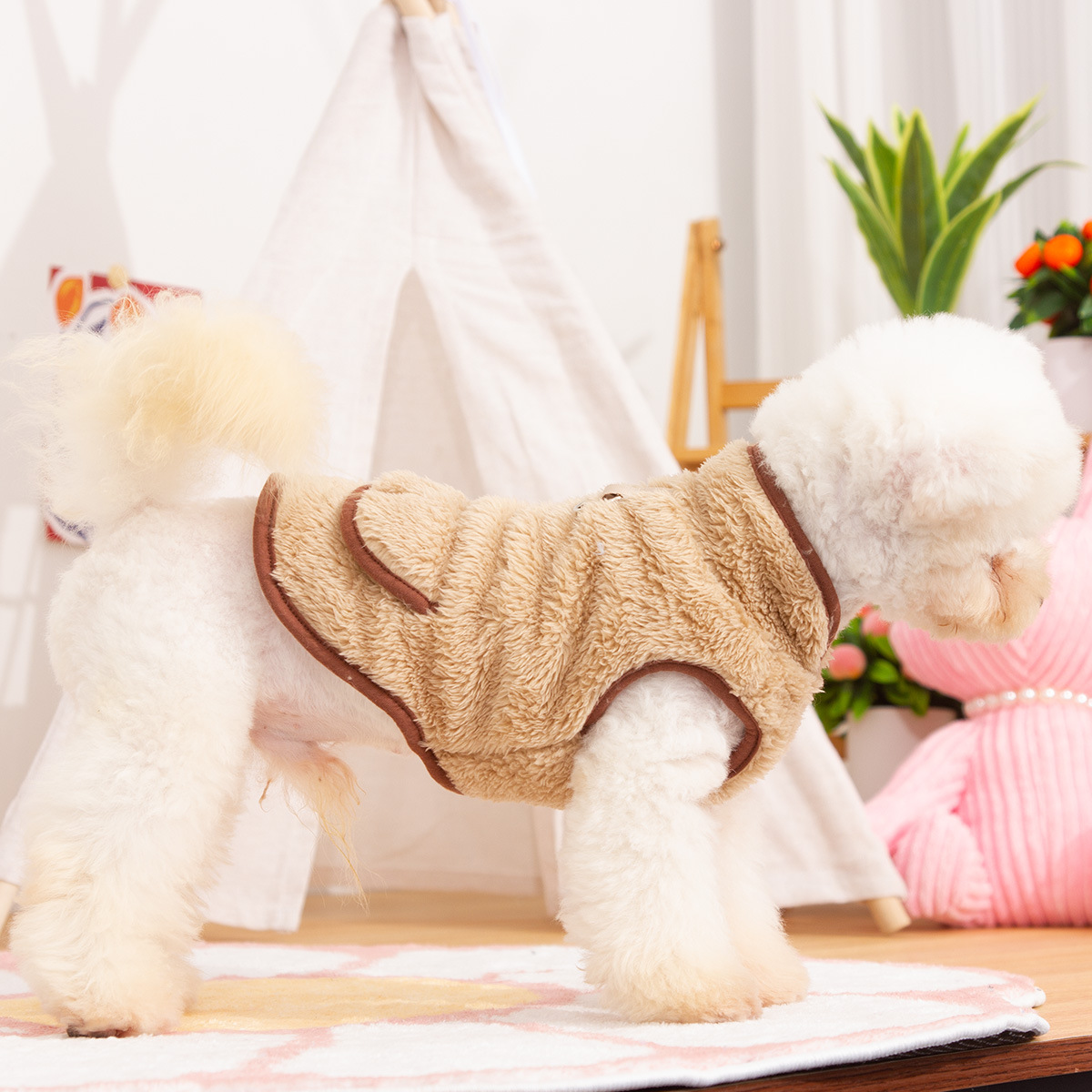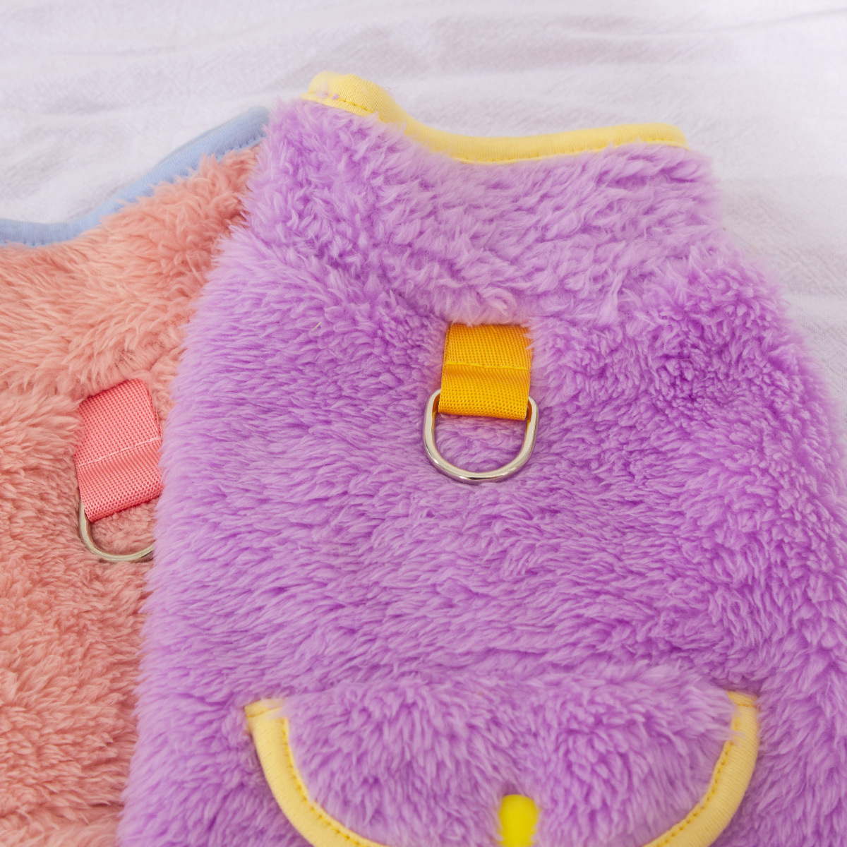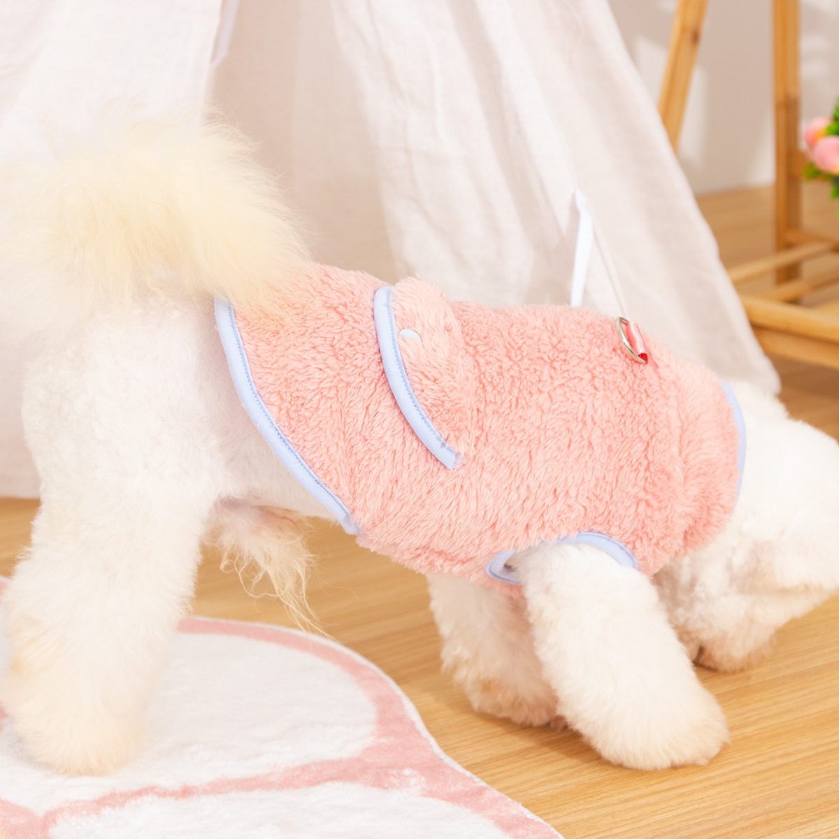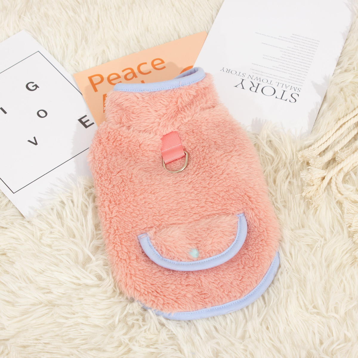새로운 개 옷 애완 동물 옷 가을, 겨울 양면 플러시 높은 칼라 따뜻하고 귀여운 견인 반지 공장 직접 판매