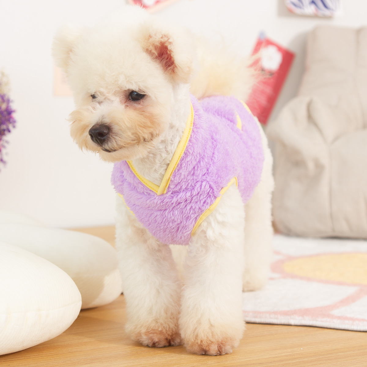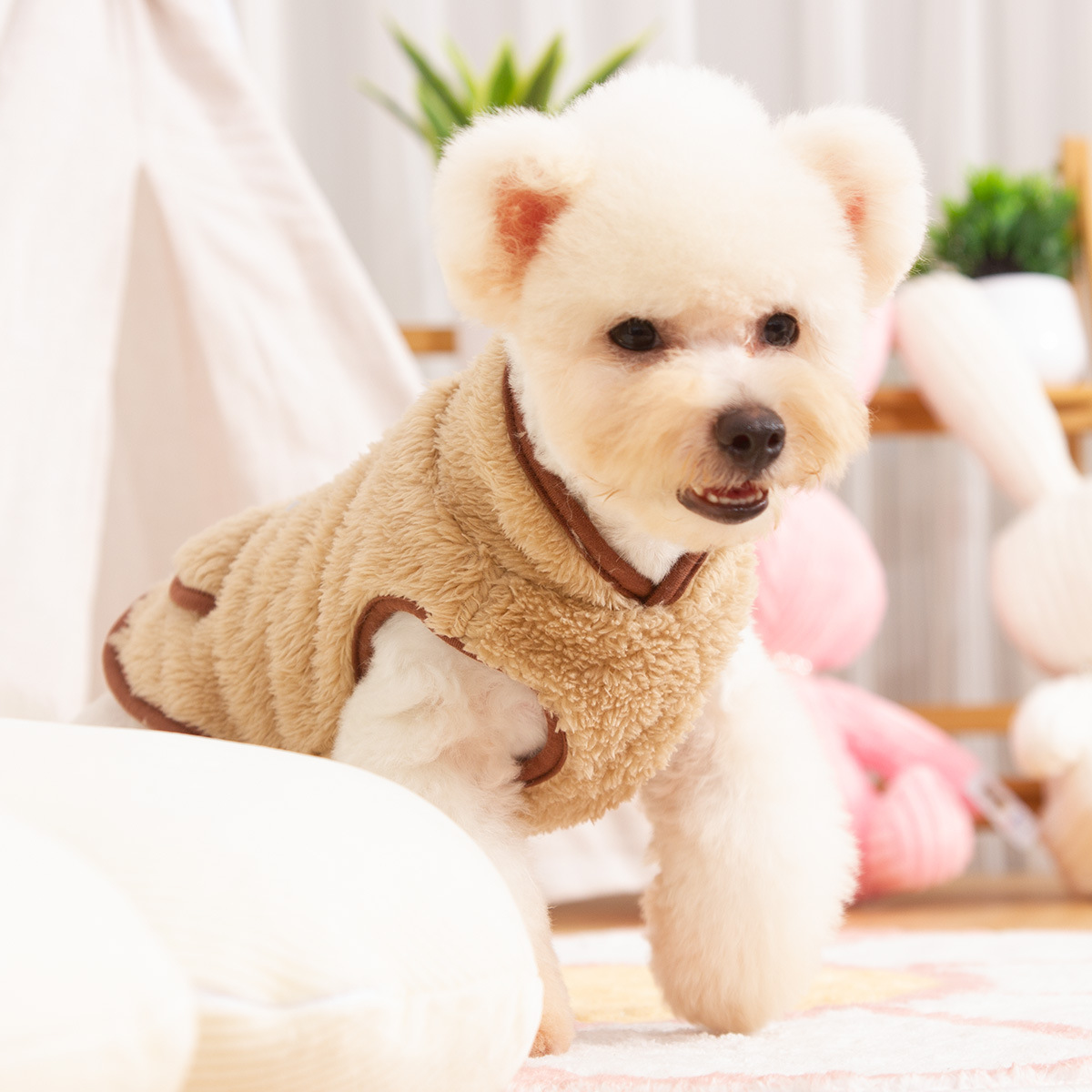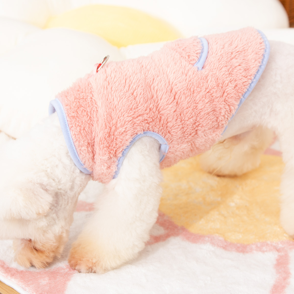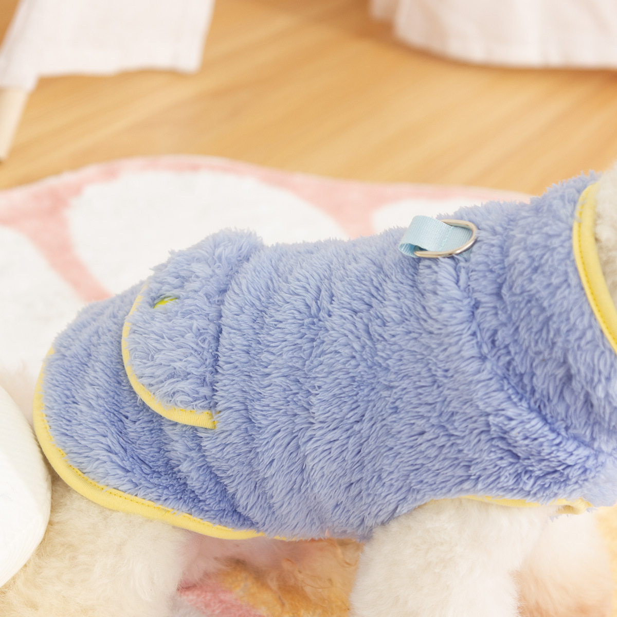 새로운 개 옷 애완 동물 옷 가을, 겨울 양면 플러시 높은 칼라 따뜻하고 귀여운 견인 반지 공장 직접 판매스토어 가기