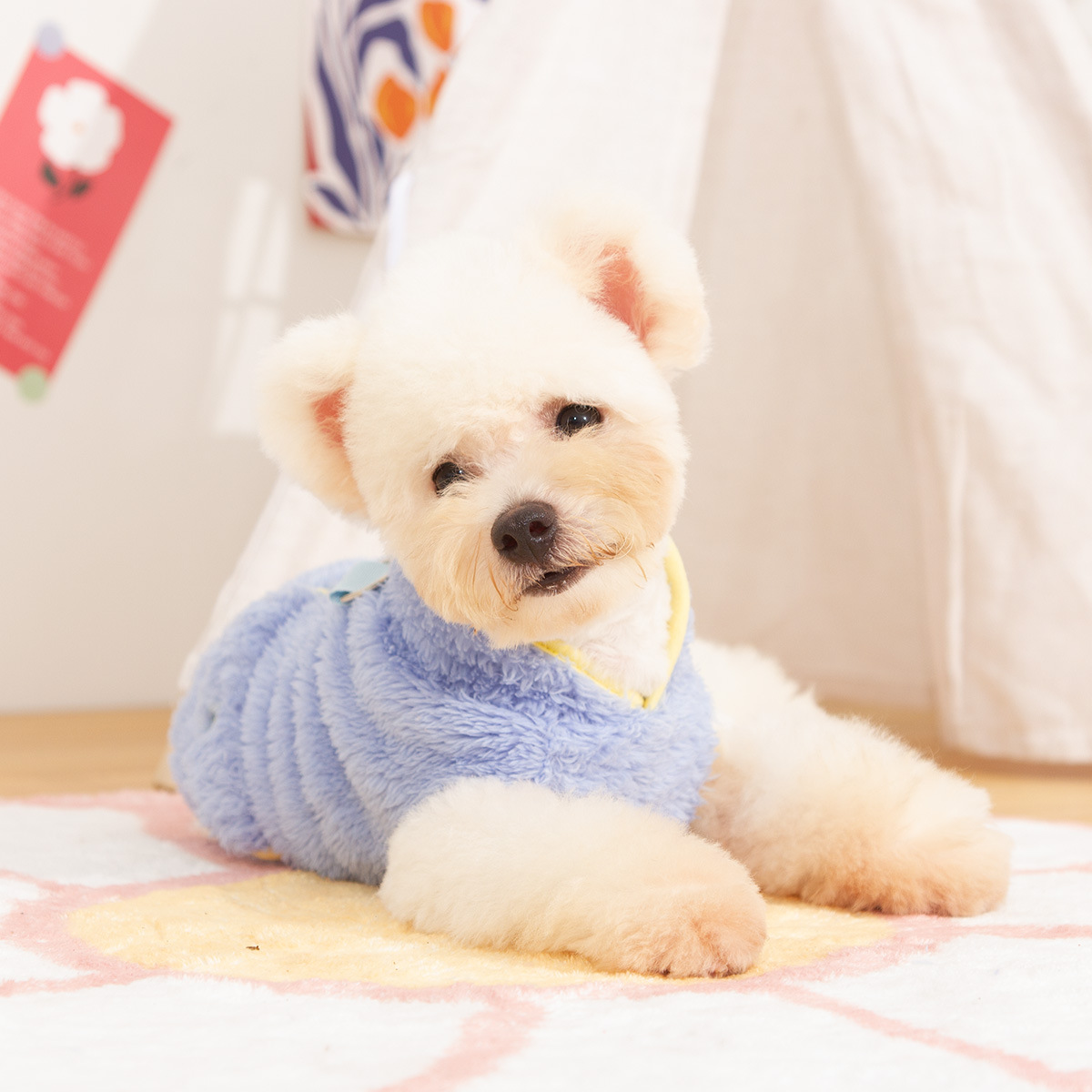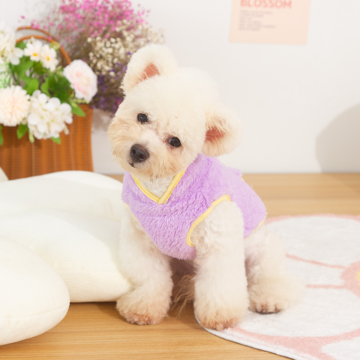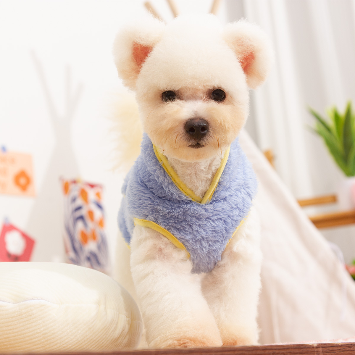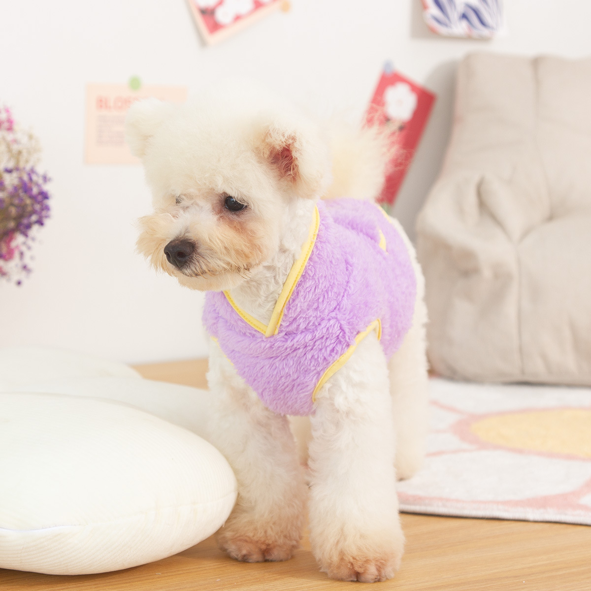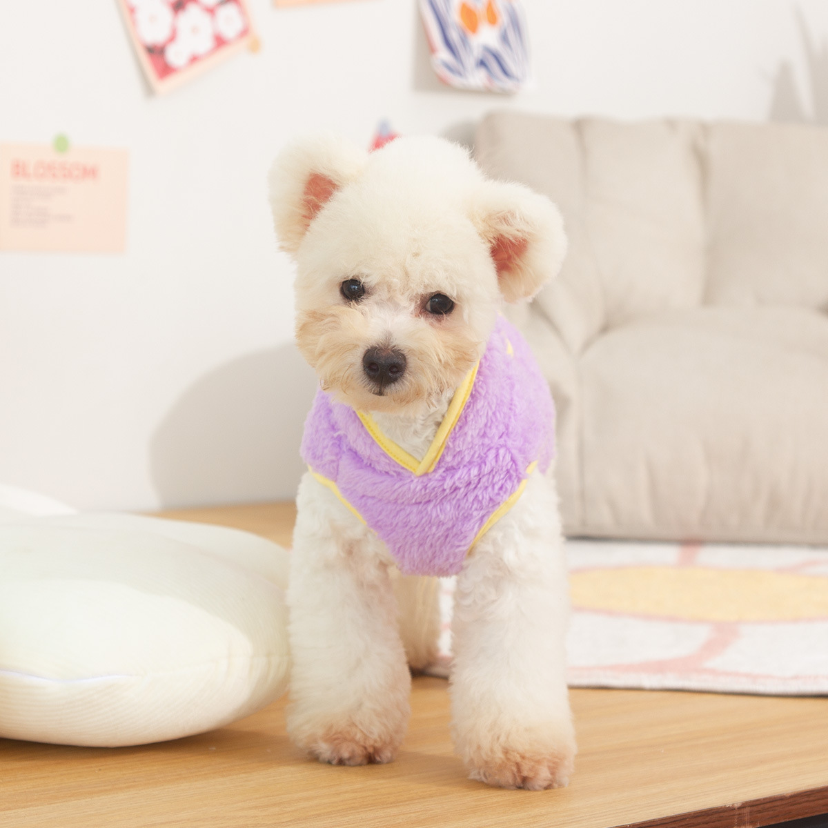 새로운 개 옷 애완 동물 옷 가을, 겨울 양면 플러시 높은 칼라 따뜻하고 귀여운 견인 반지 공장 직접 판매스토어 가기