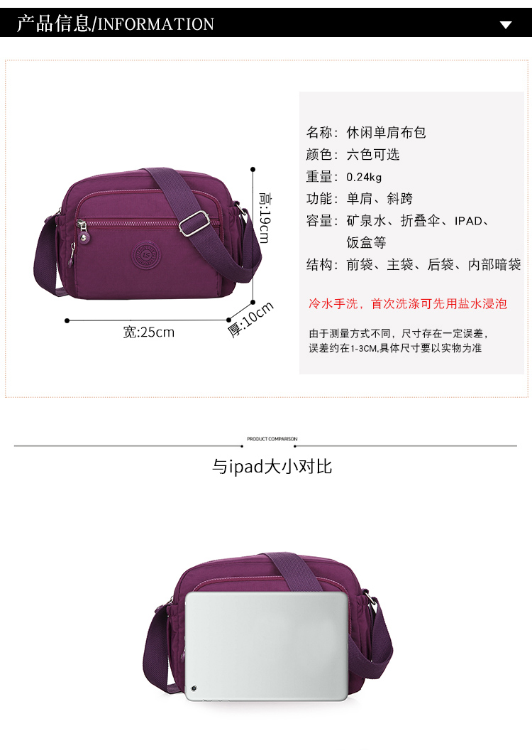방수 여성 가방 다층 나일론 옥스포드 캔버스 메신저 가방 캐주얼 작은 배낭 비즈니스 지갑 어깨 가방