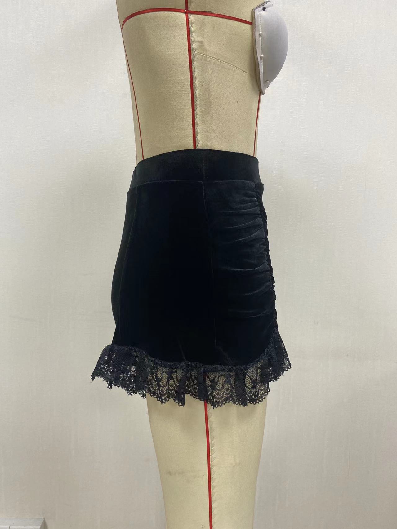 여자의 고딕 다크 섹시 빈티지 하이 웨이스트 벨벳 주름 레이스 반바지