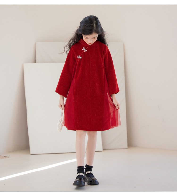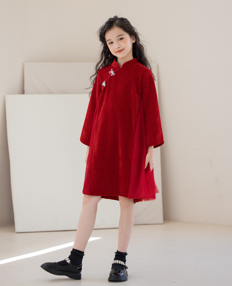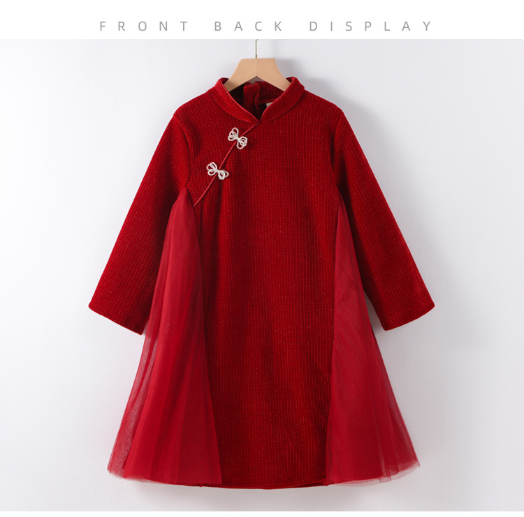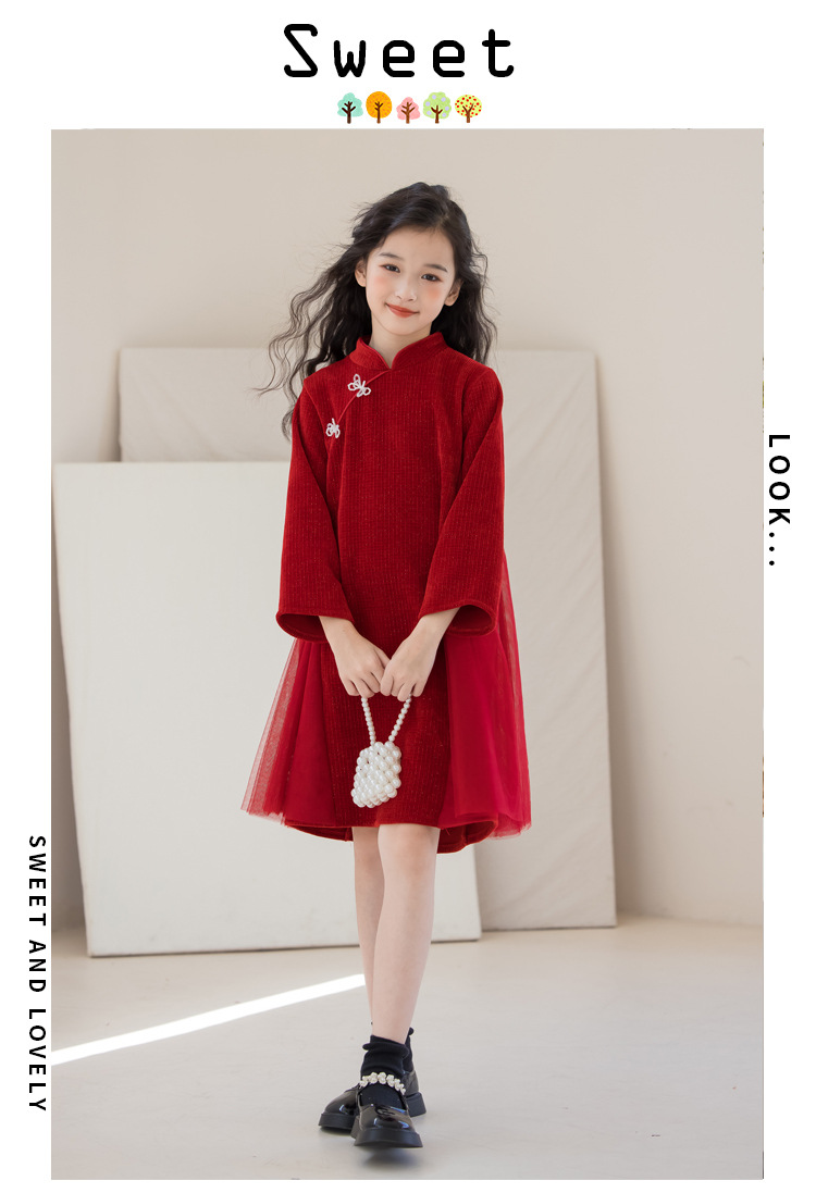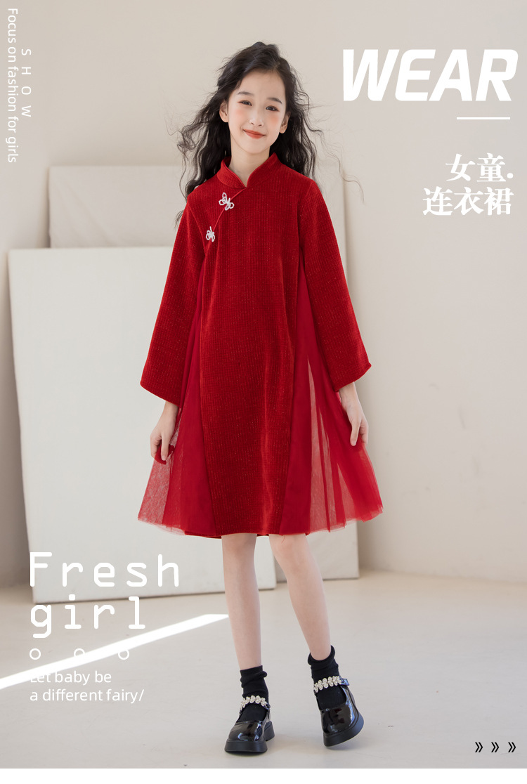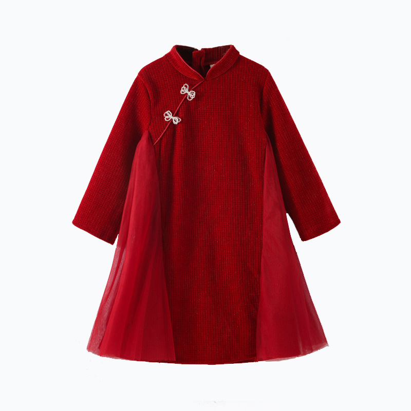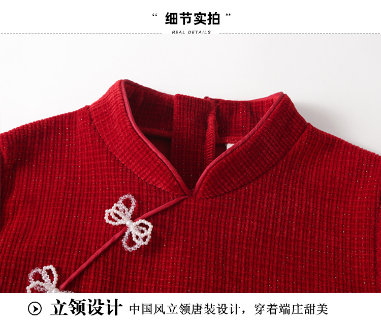 여아 가을 겨울 드레스 두꺼운 2025 중국풍 빨간색 당나라 의상 설날 의상 중대형 어린이 새해 드레스 긴 소매