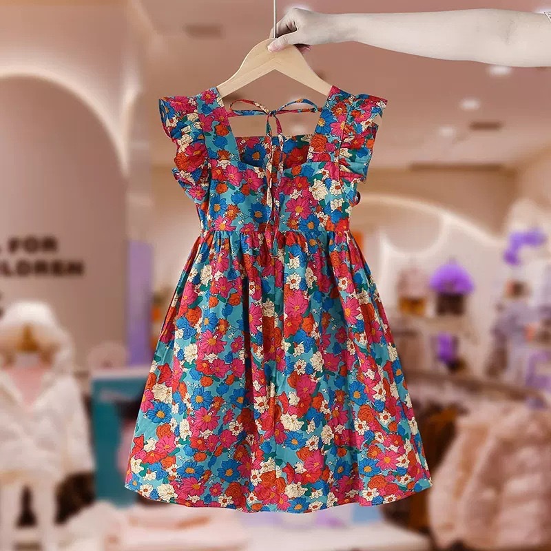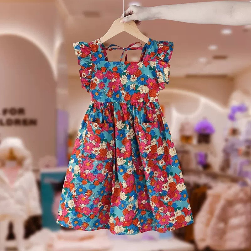 여자 꽃 원피스 여름 어린이 달콤한 비행 소매 치마 어린이 치마 3-8 세 어린이 의류 머리카락의 세대스토어 가기
