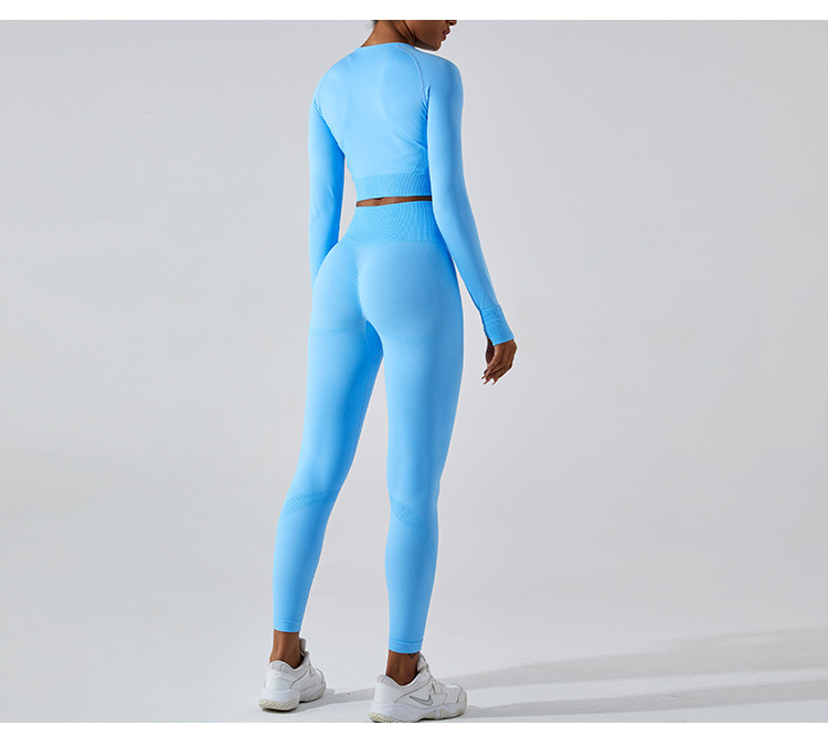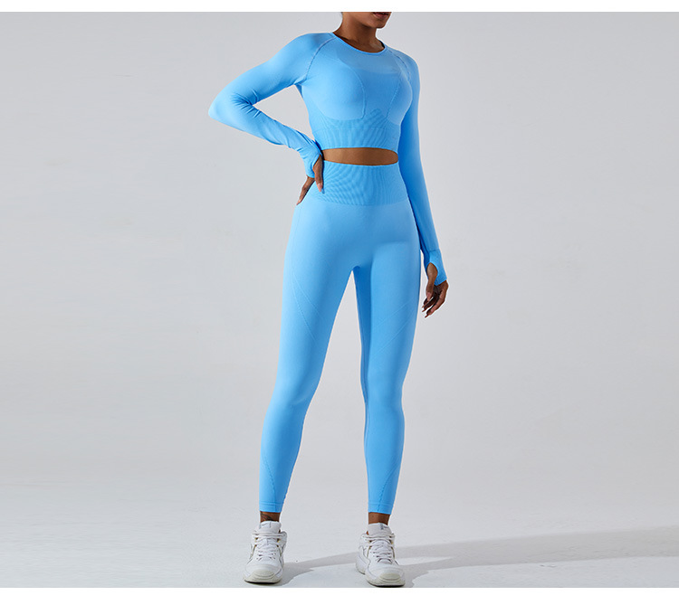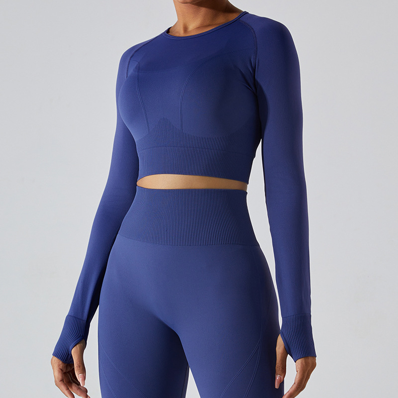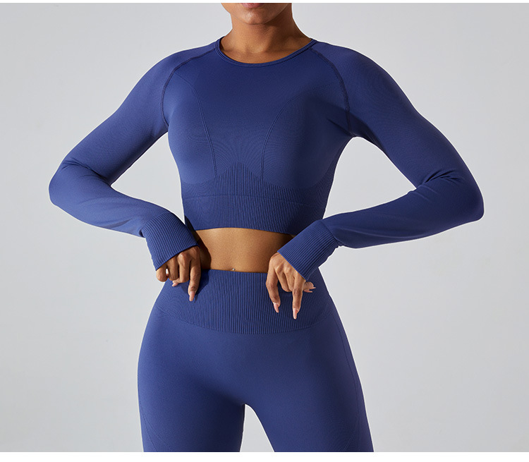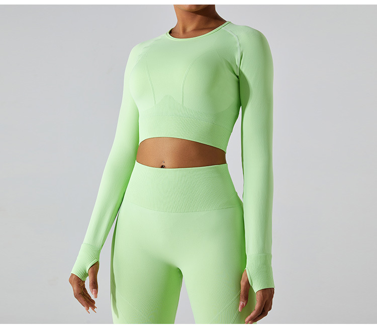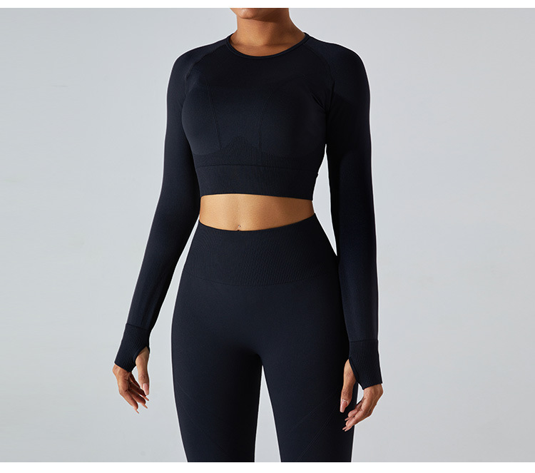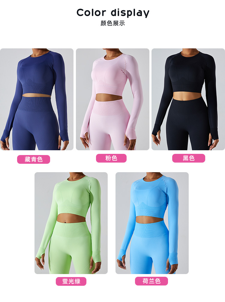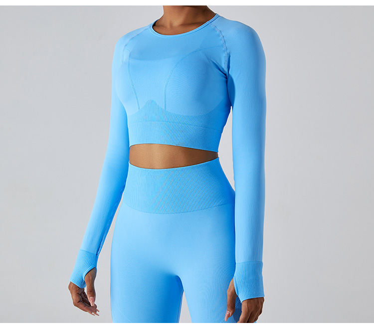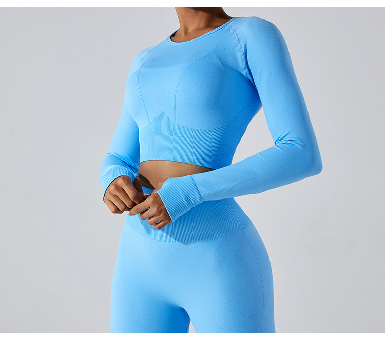유럽과 미국의 신상품 원활한 속건 슬리밍 요가 의류 탑 여성용 긴팔 티셔츠 야외 스포츠웨어 러닝 피트니스 의류