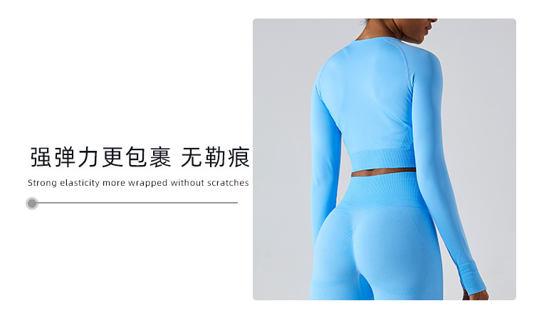 유럽과 미국의 신상품 원활한 속건 슬리밍 요가 의류 탑 여성용 긴팔 티셔츠 야외 스포츠웨어 러닝 피트니스 의류스토어 가기