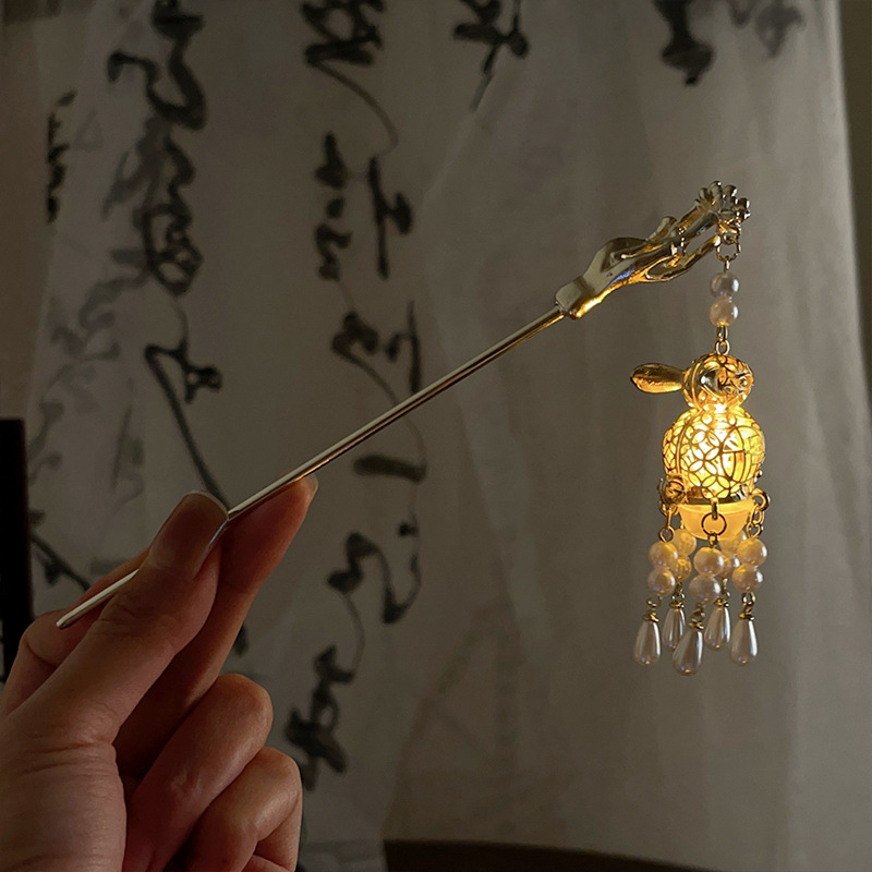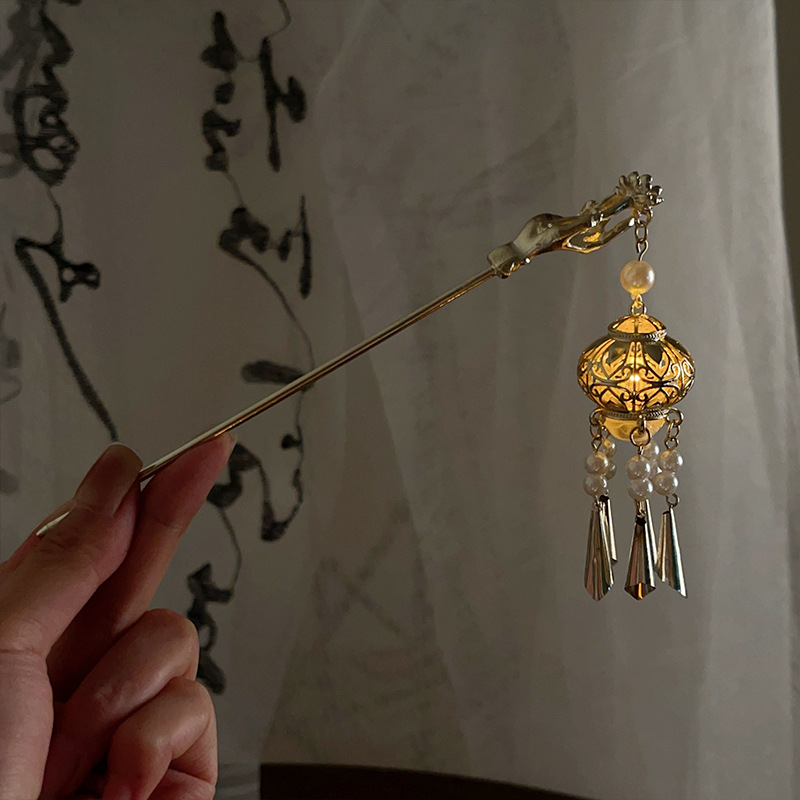 골동품 따뜻한 램프 합금 머리핀 술 한푸 액세서리 금속 모자 빛나는 머리핀 궁전 랜턴 펜던트 헤어 액세서리