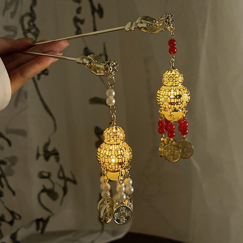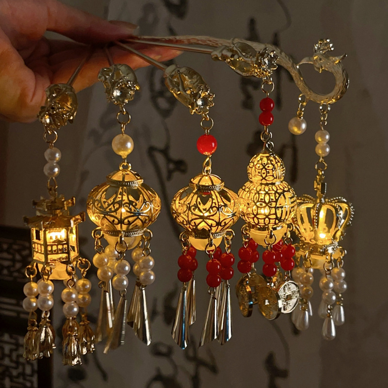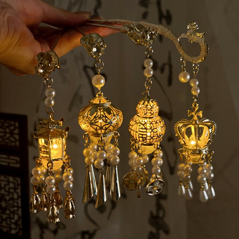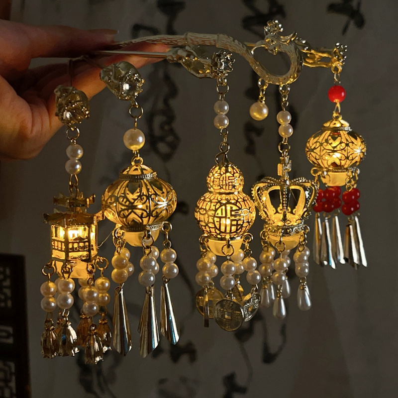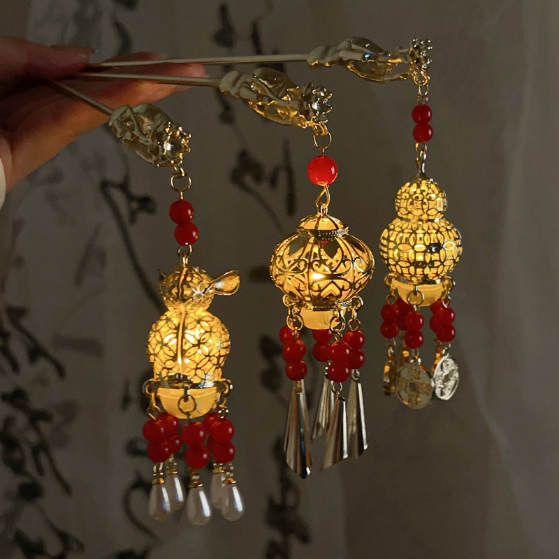 골동품 따뜻한 램프 합금 머리핀 술 한푸 액세서리 금속 모자 빛나는 머리핀 궁전 랜턴 펜던트 헤어 액세서리스토어 가기