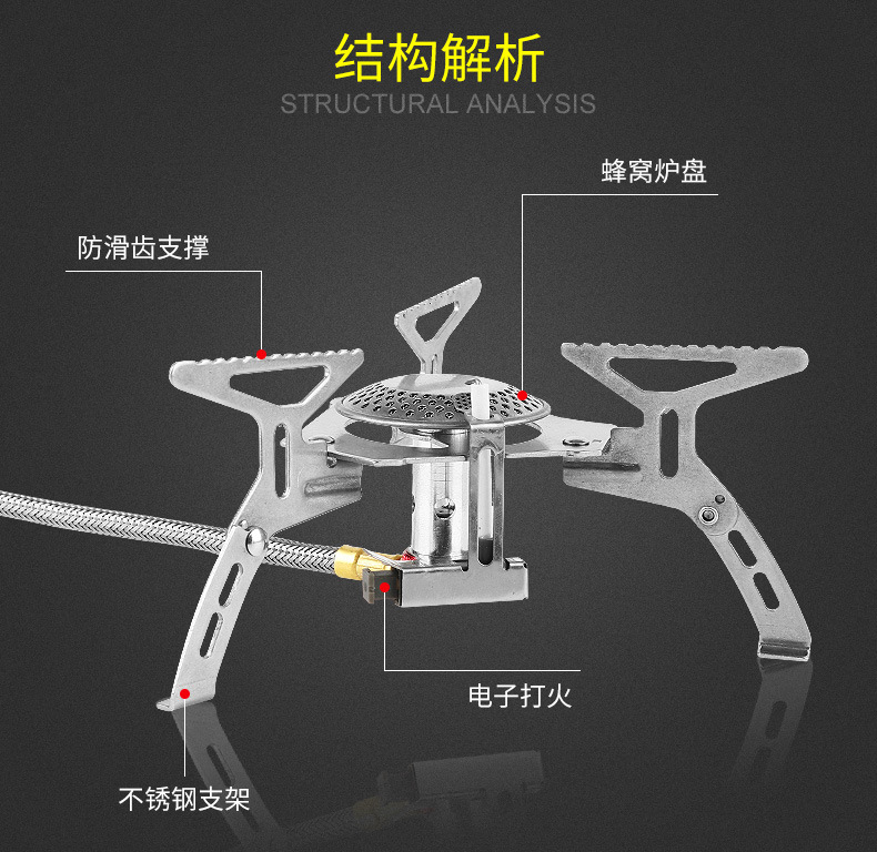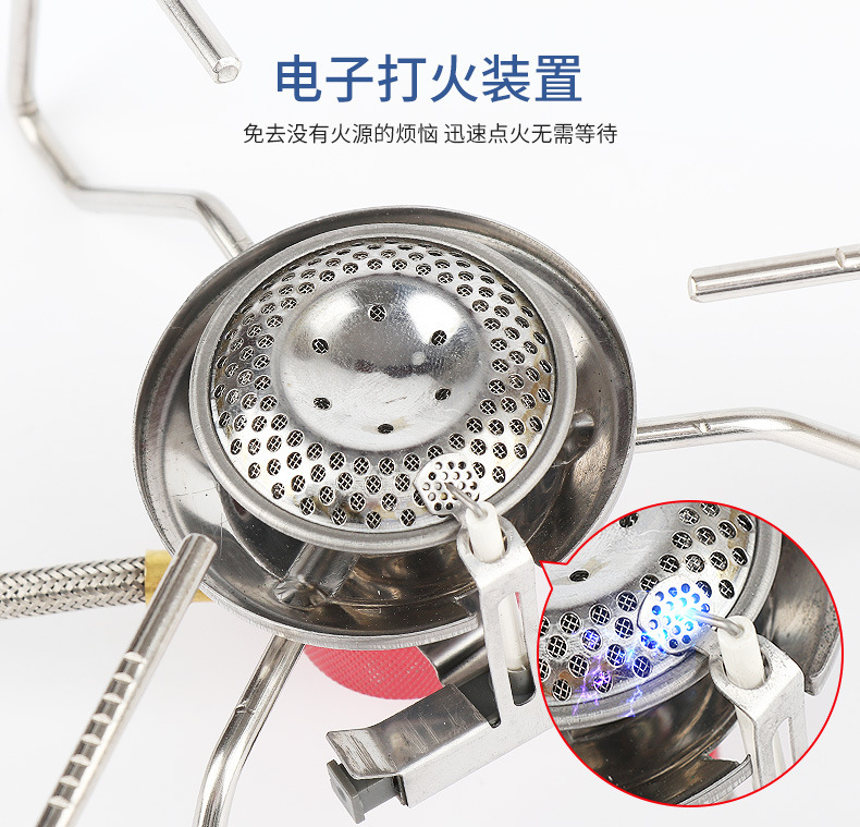 材质:炉头底座为一体式高轻度铝合金,强度高;耐高温强度高, 带陶瓷压电打火