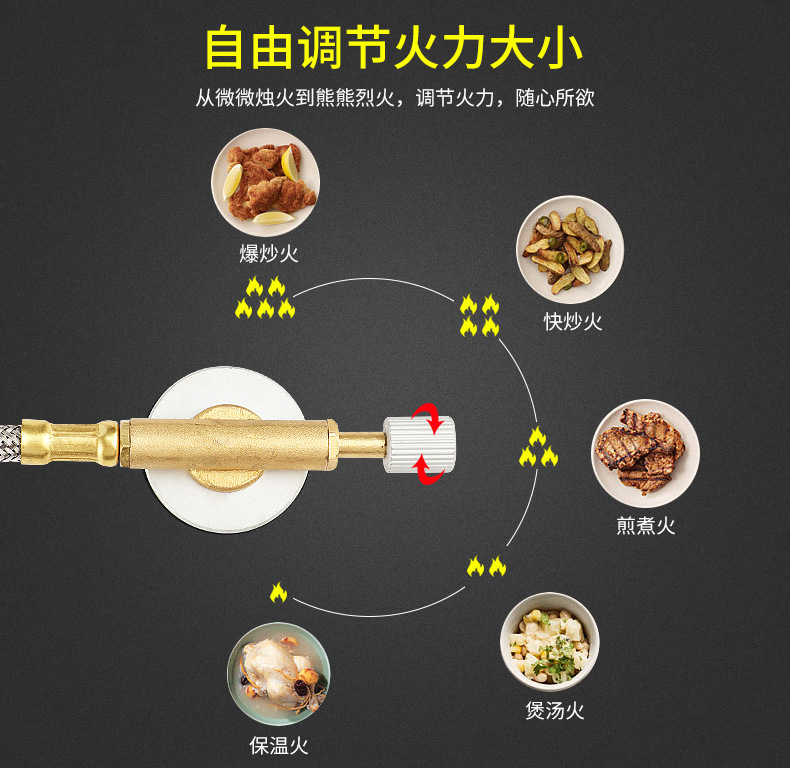 材质:炉头底座为一体式高轻度铝合金,强度高;耐高温强度高