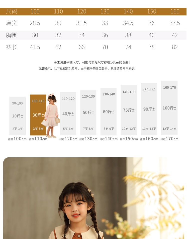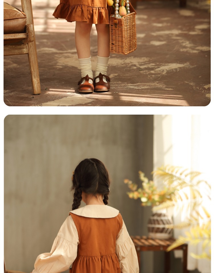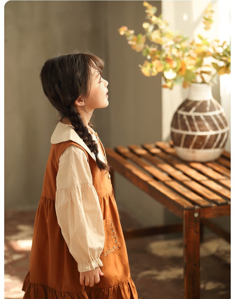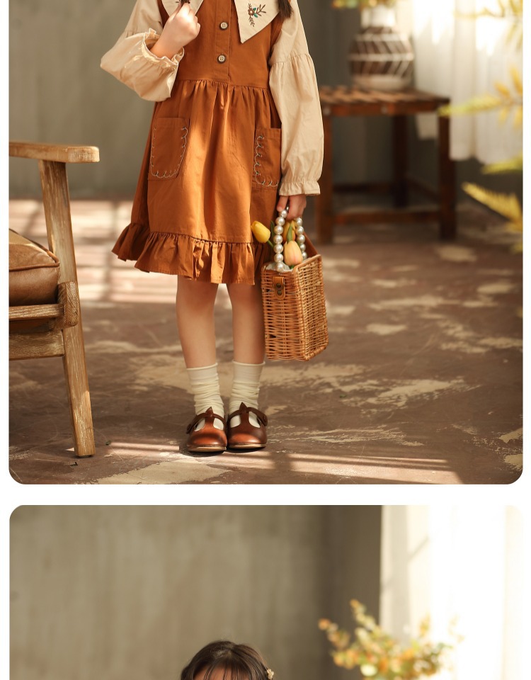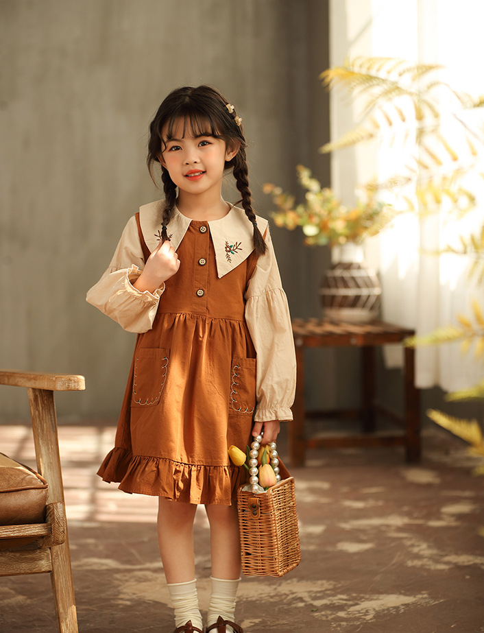 여자 가을 드레스 가짜 투피스 2025 새로운 봄, 가을 긴팔 자수 메일라드 인형 칼라 중대형 어린이스토어 가기