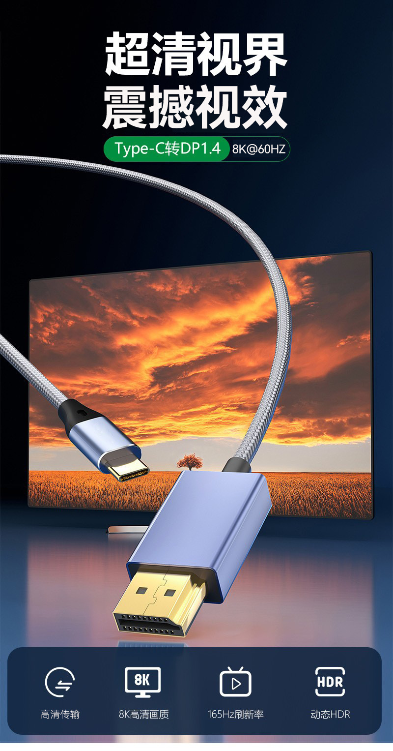 재고 있음 type-c to dp 케이블 8K 동시 화면 연결 케이블 휴대폰 태블릿 컴퓨터 모니터 TV 고화질 변환 케이블스토어 가기