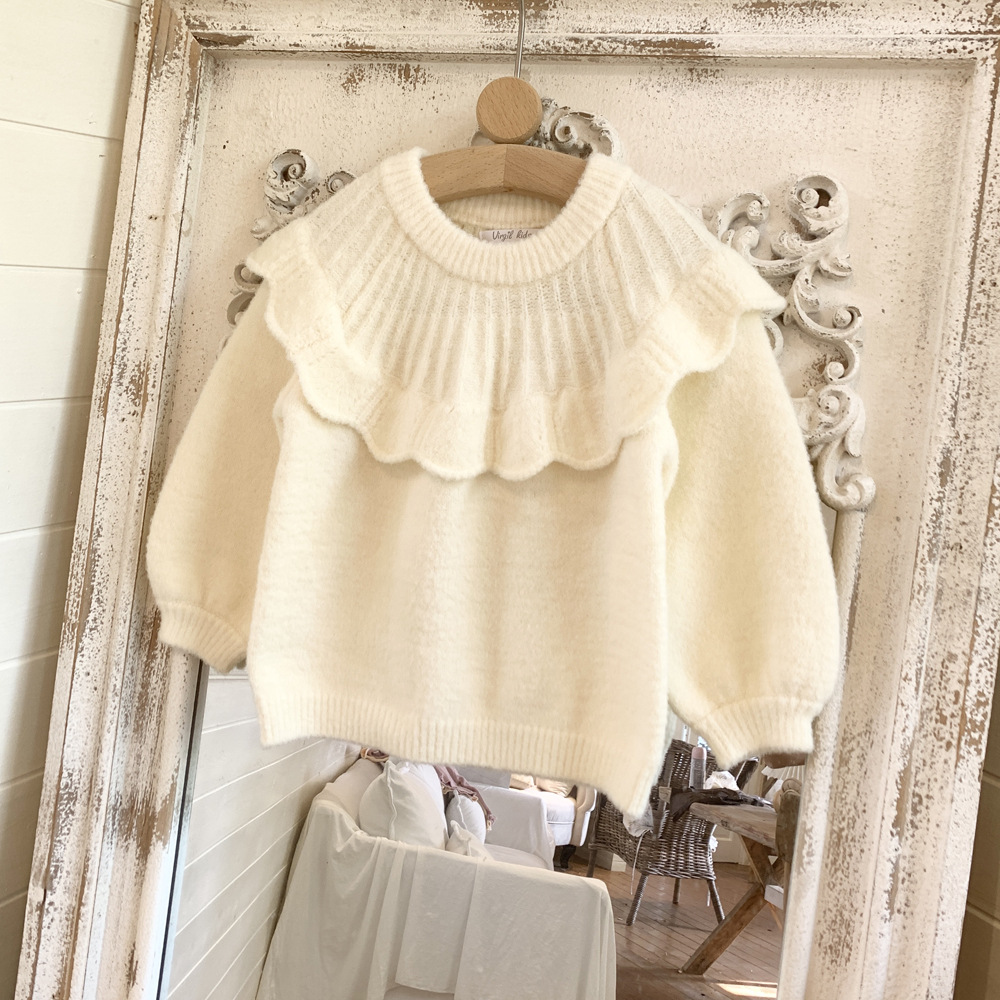 외국 무역 여아용 부드럽고 달콤한 인조 밍크 스웨터, 인스 스타일 여아용 귀여운 랜턴 슬리브 스웨터