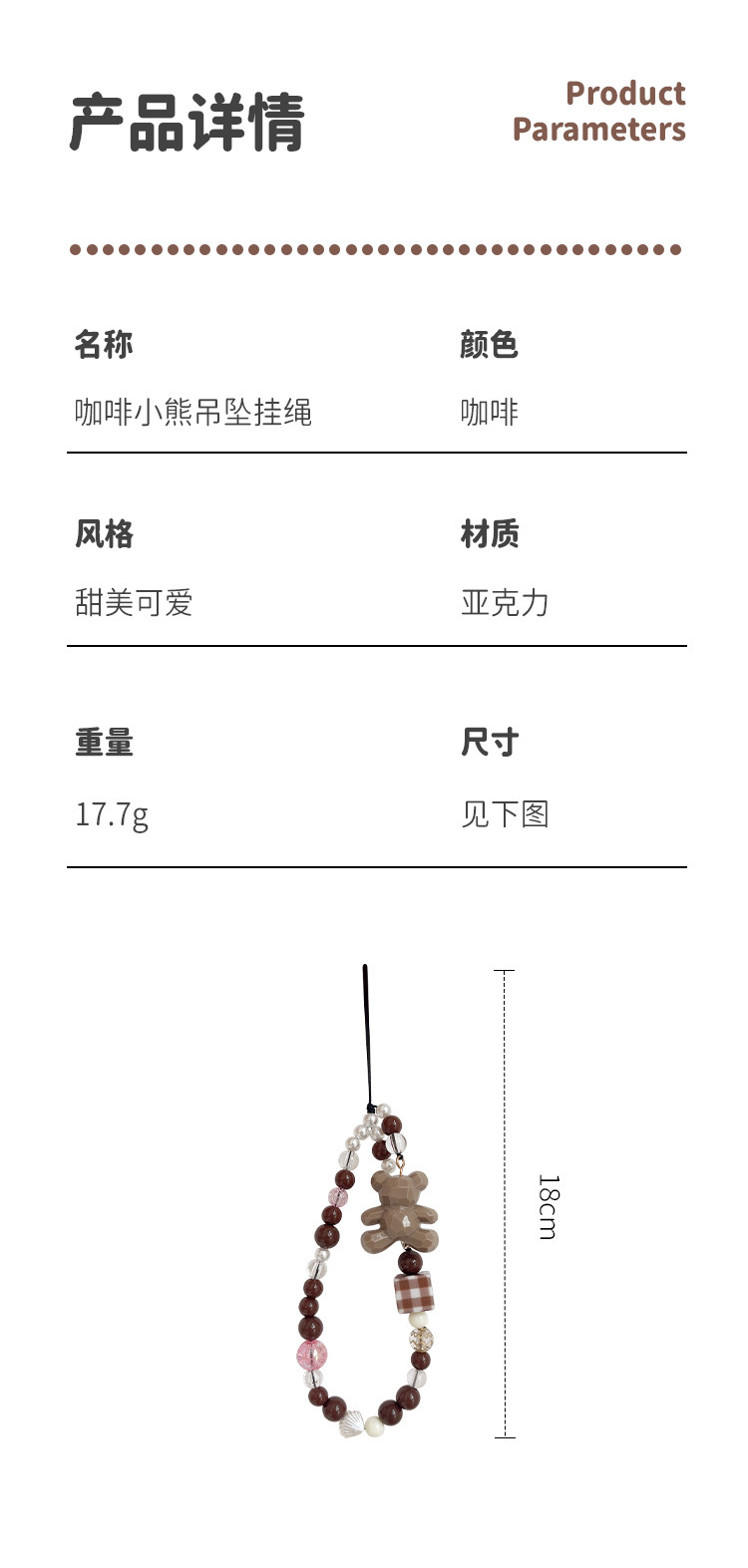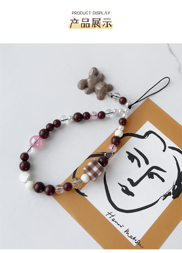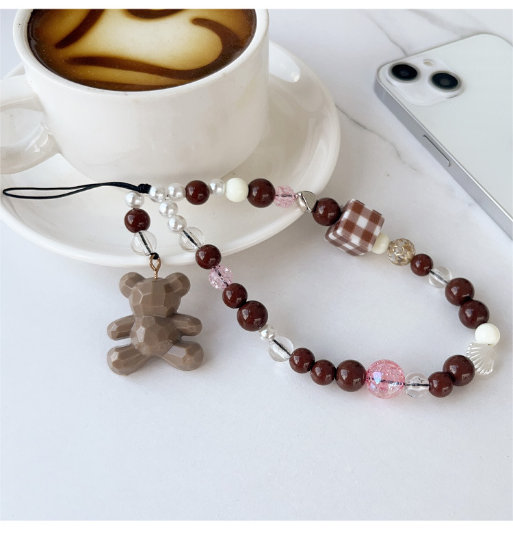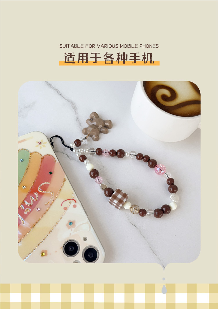 새로운 커피 베어 펜던트 끈 사각 격자 무늬 손목 휴대 전화 케이스 키 체인 유니버설 쥬얼리 낙하 방지스토어 가기