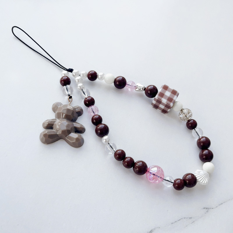 새로운 커피 베어 펜던트 끈 사각 격자 무늬 손목 휴대 전화 케이스 키 체인 유니버설 쥬얼리 낙하 방지