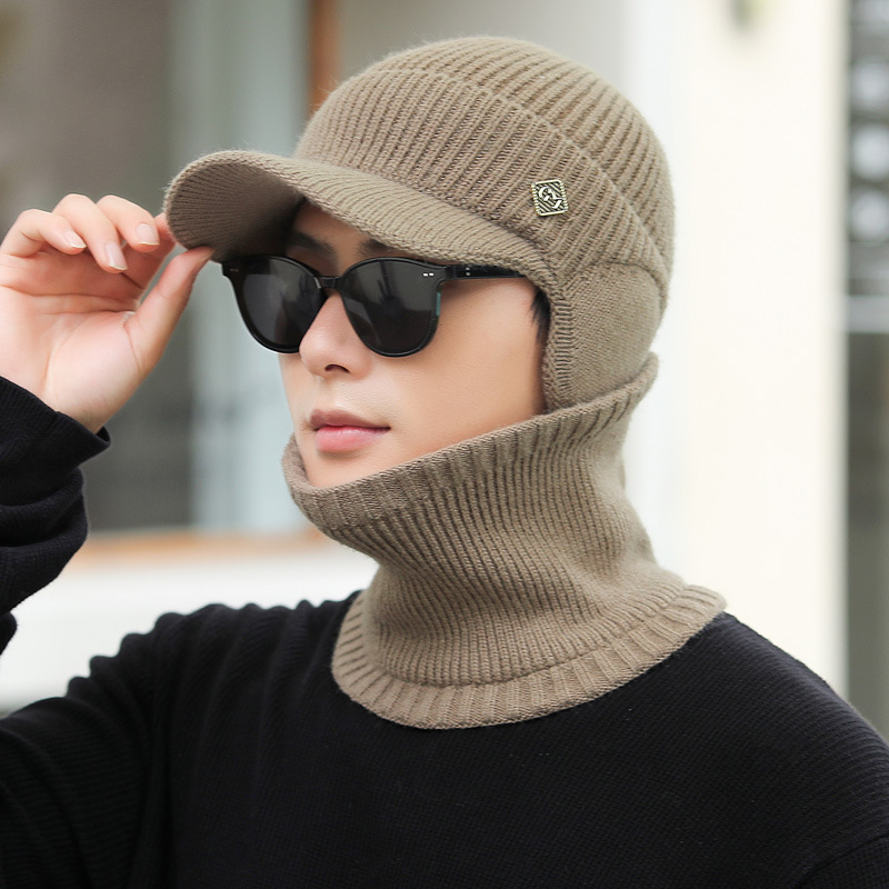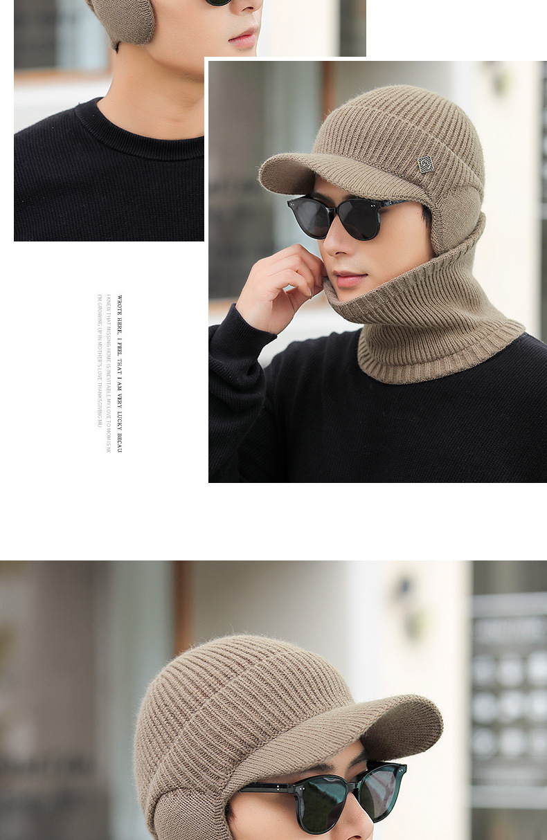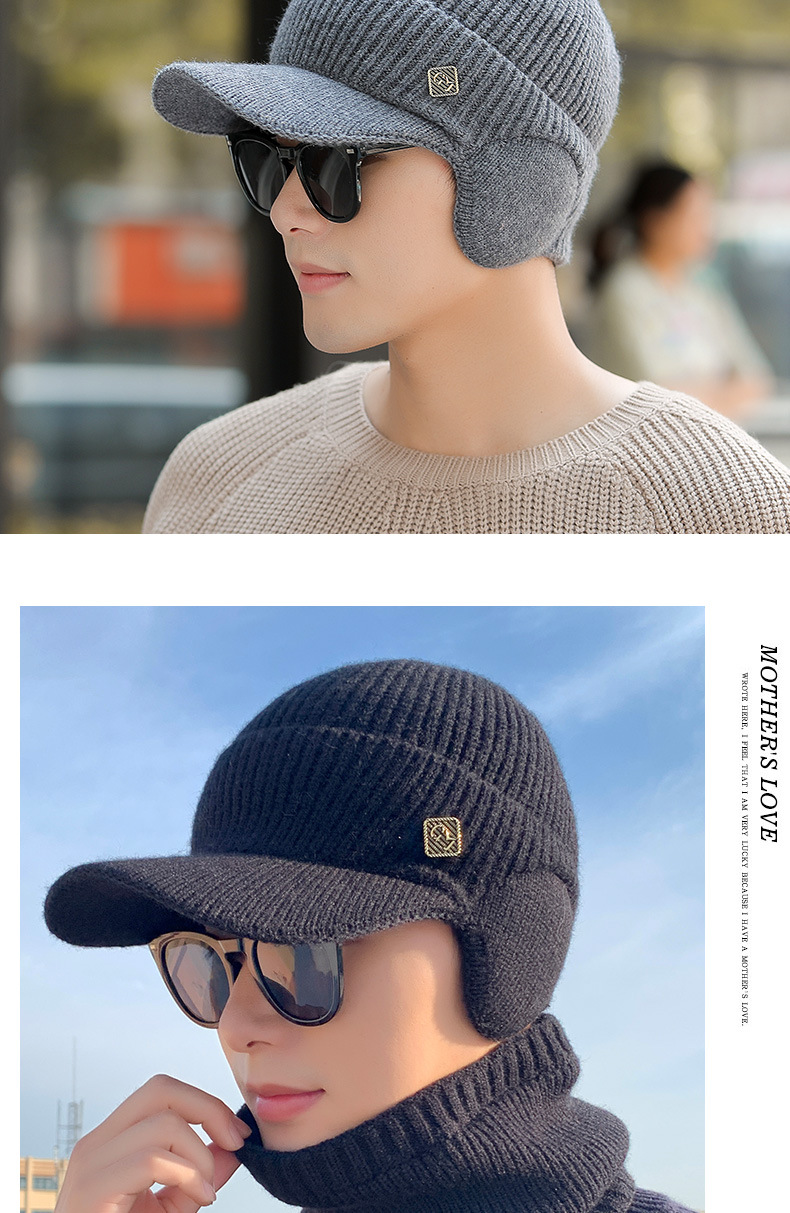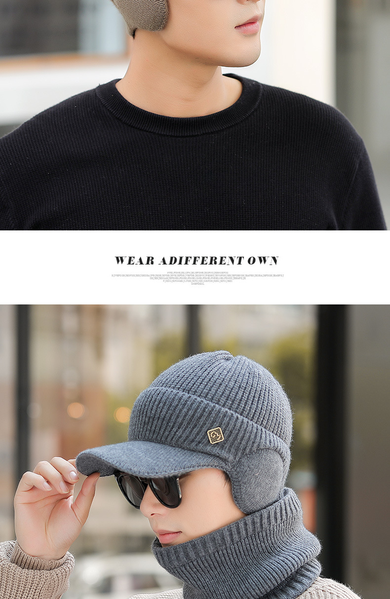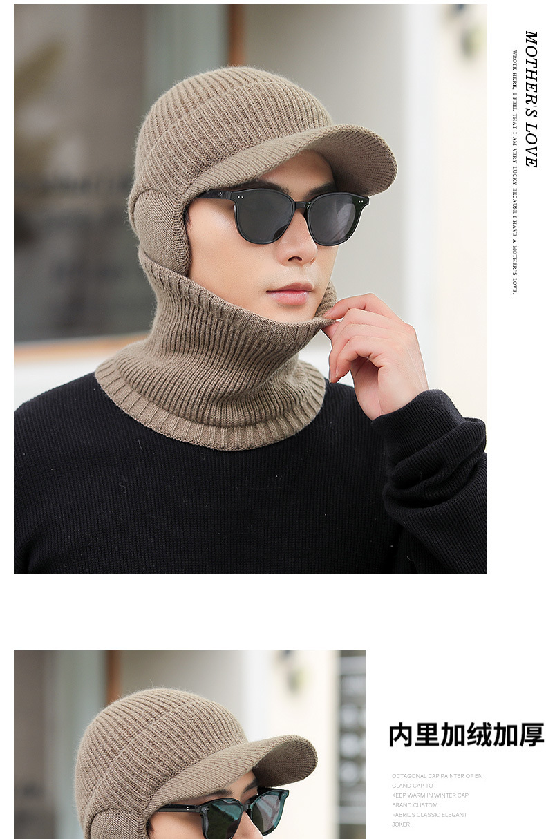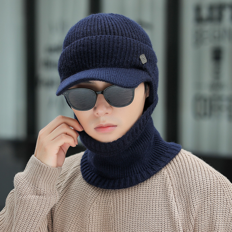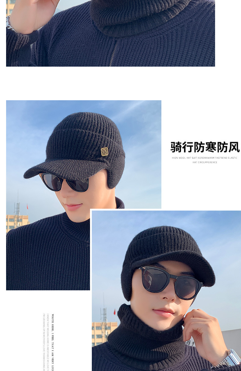 새로운 기모 따뜻한 귀 보호 가방 니트 오리 혀 모자 남자의 가을과 겨울 사이클링 스포츠 방한 울 스카프 세트