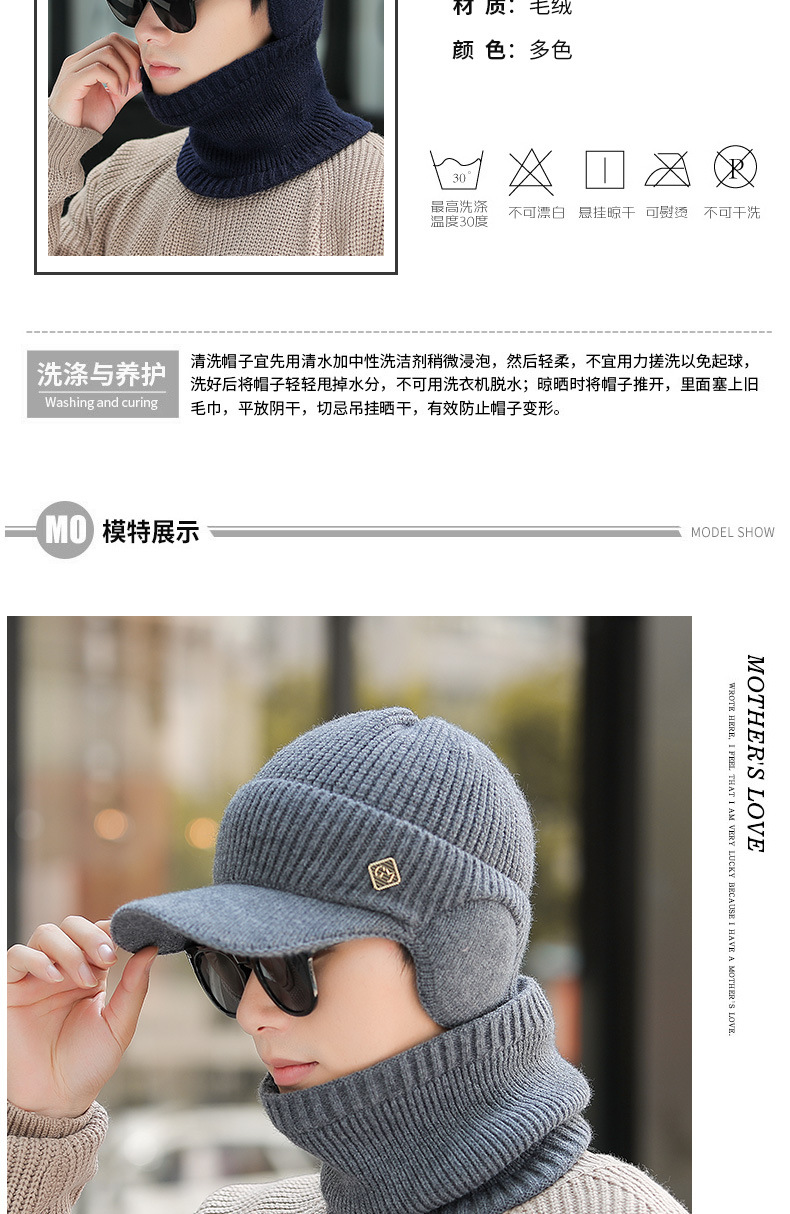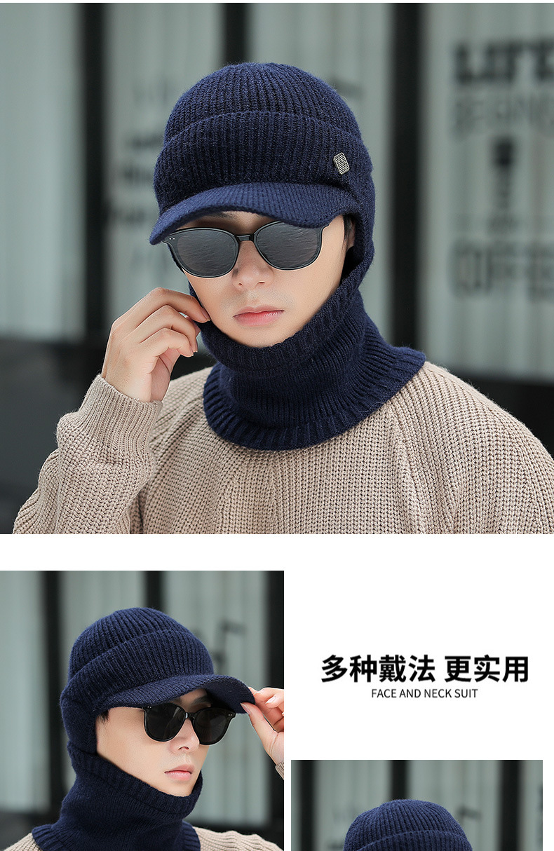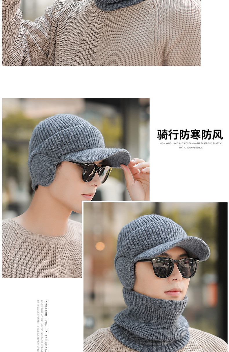 새로운 기모 따뜻한 귀 보호 가방 니트 오리 혀 모자 남자의 가을과 겨울 사이클링 스포츠 방한 울 스카프 세트스토어 가기