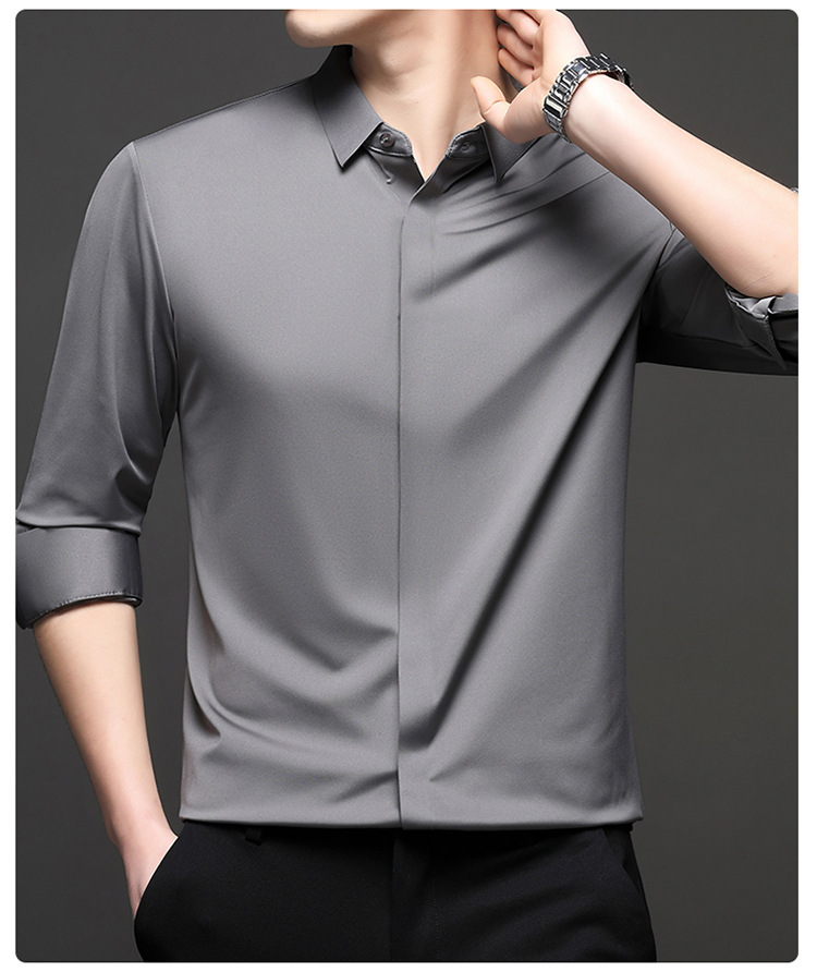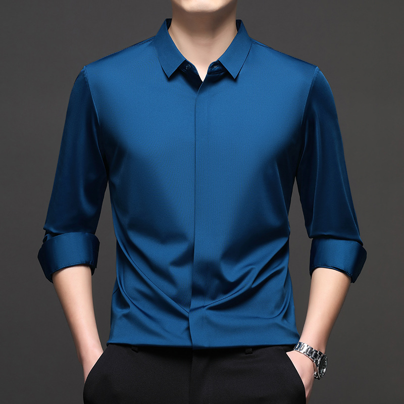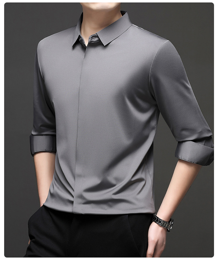 가을 남성용 솔리드 컬러 캐주얼 패션 긴팔 셔츠, 트렌디한 남성복