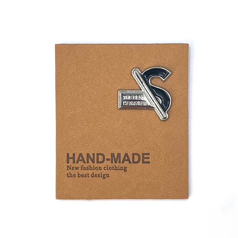• S PU 가죽 하드웨어 라벨 5.5*6.5cm 카키