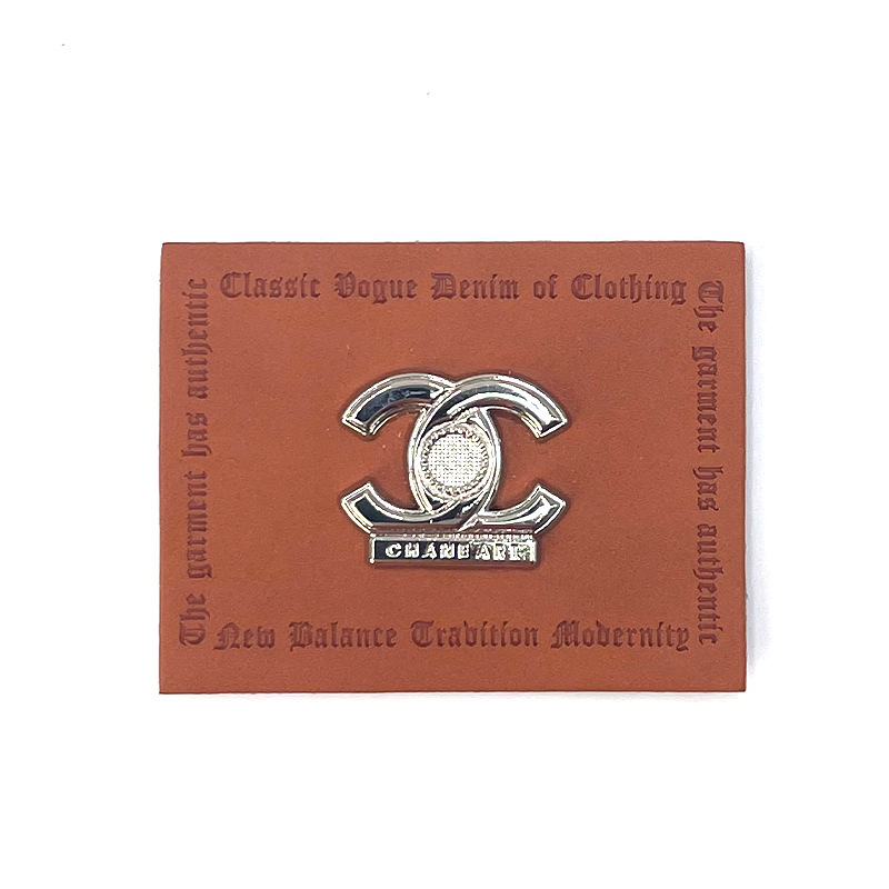 새로운 여성 의류 더블 C 울트라 화이버 가죽 라벨 가죽 가방 라벨 액세서리 6*4.5cm 수하물 PU 라벨 하드웨어 상표