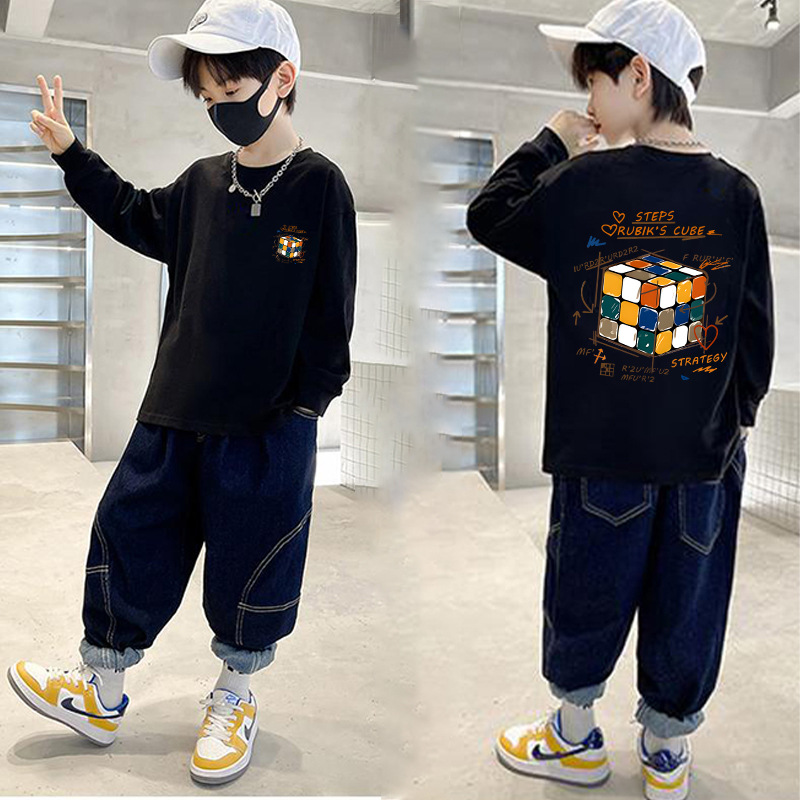 [100 면] 아동복 남아 티셔츠 긴 소매 가을 어린이 중간 및 큰 소년 탑 반 소매 베이스 셔츠