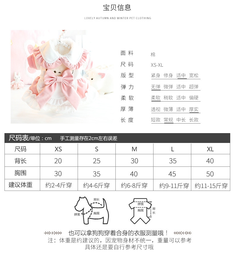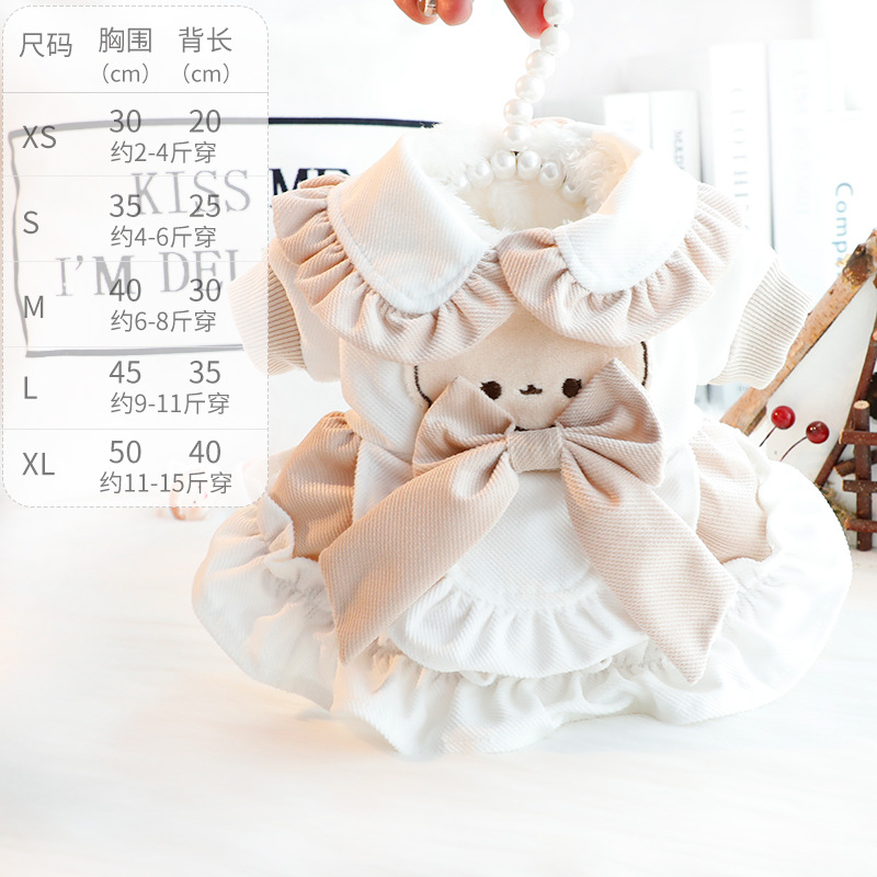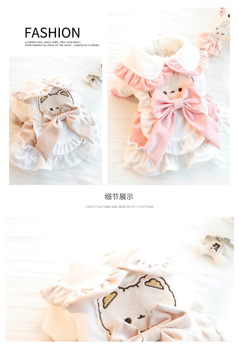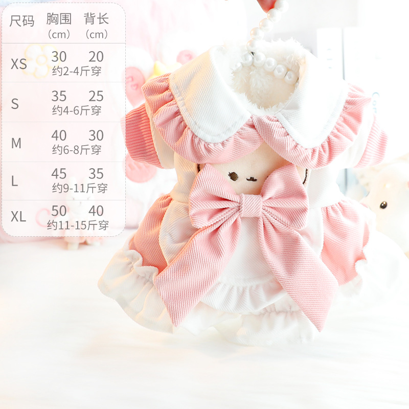 개 옷 가을과 겨울 두꺼운 고양이 공주 원피스 활 달콤한 귀여운 작은 개 테디 애완 동물 4845