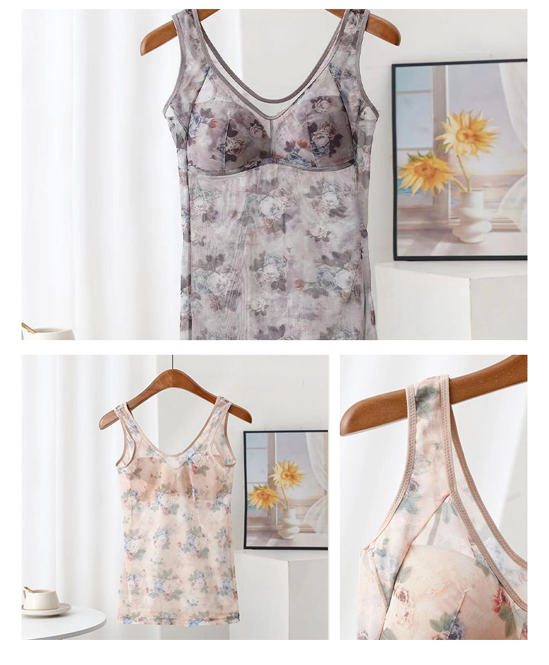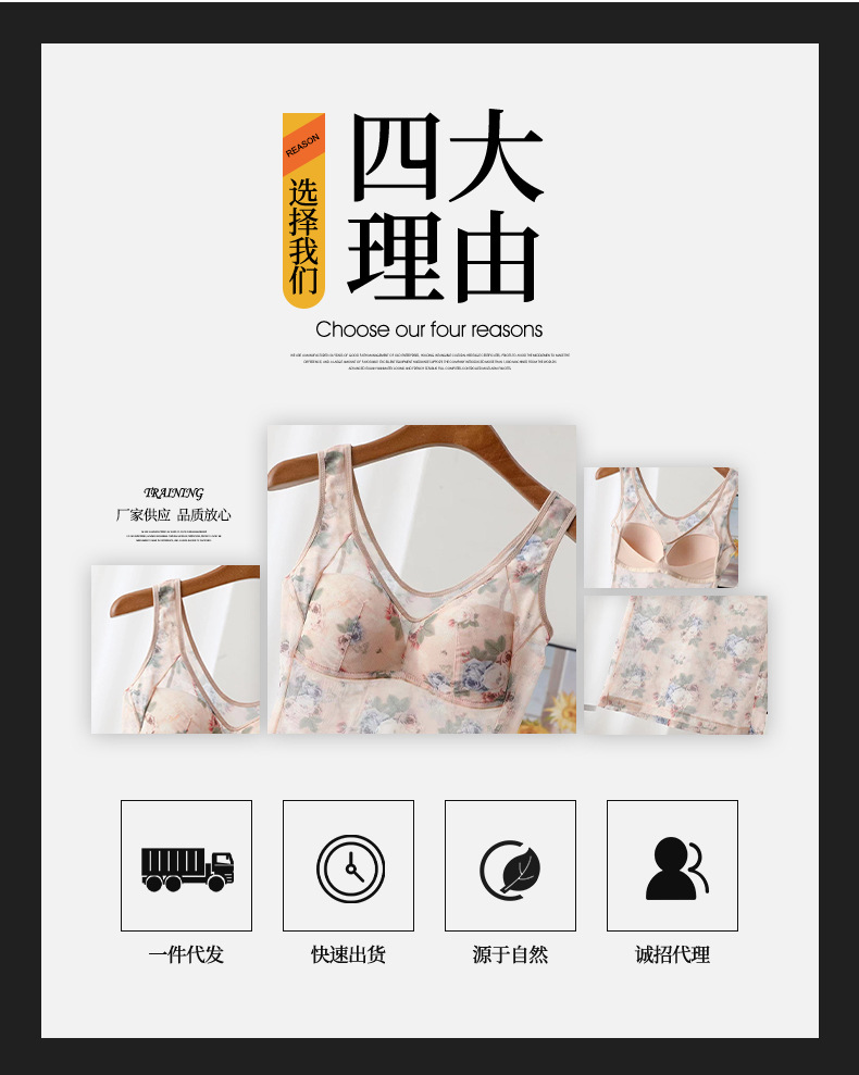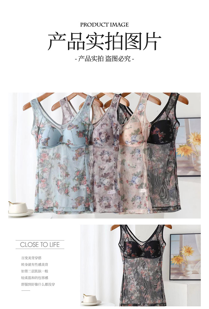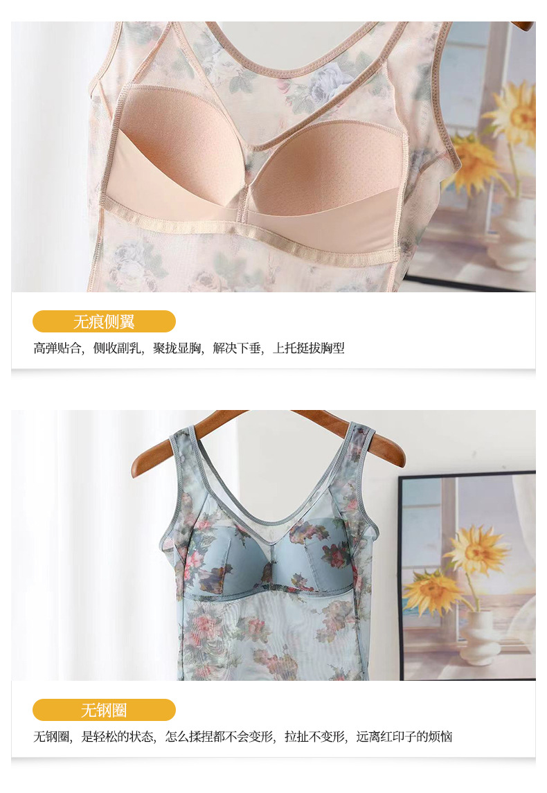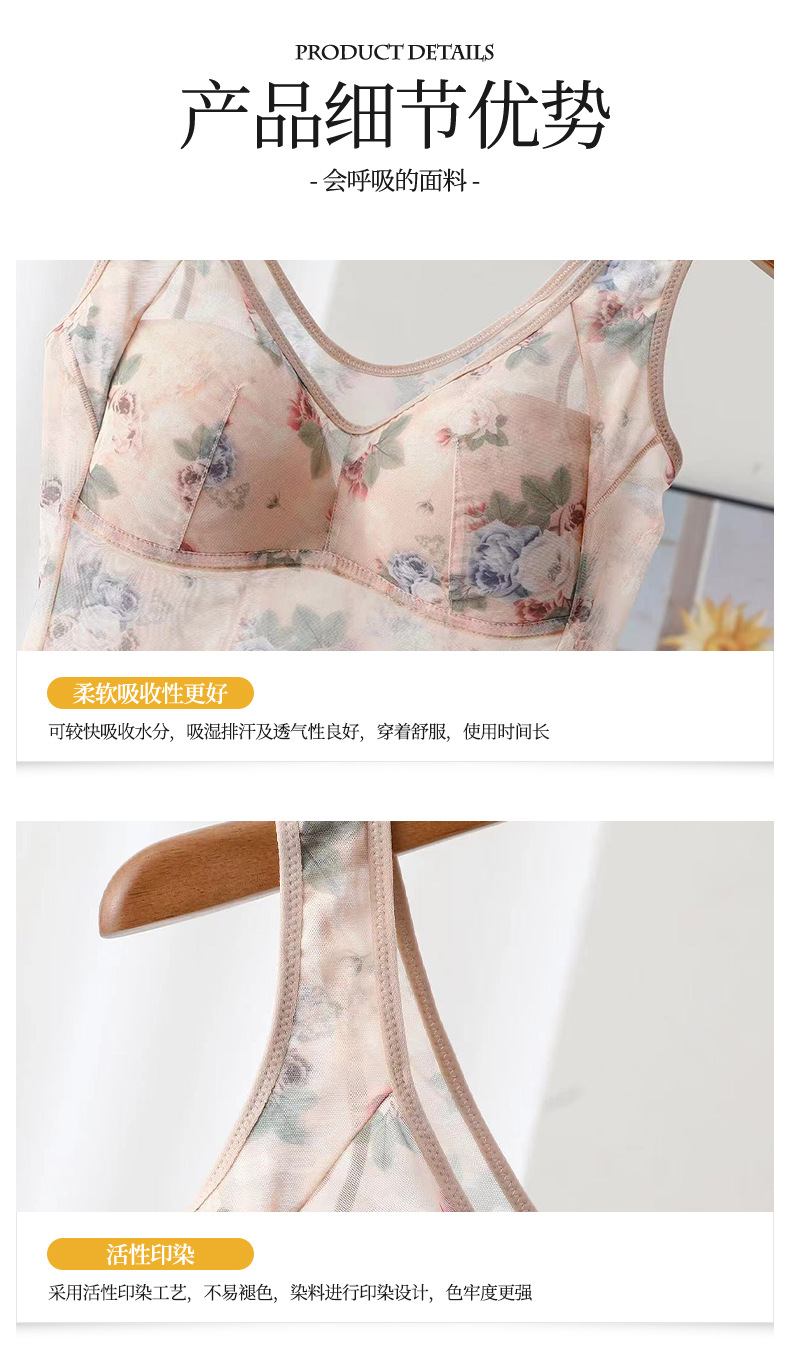 805 레트로 메쉬 큰 꽃무늬 노와이어 얇은 푸쉬업 편안한 탱크탑 스타일 롱 브라 대형 사이즈 이너웨어스토어 가기