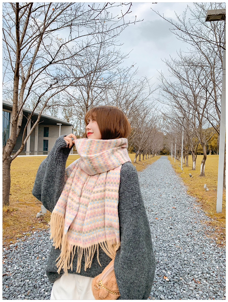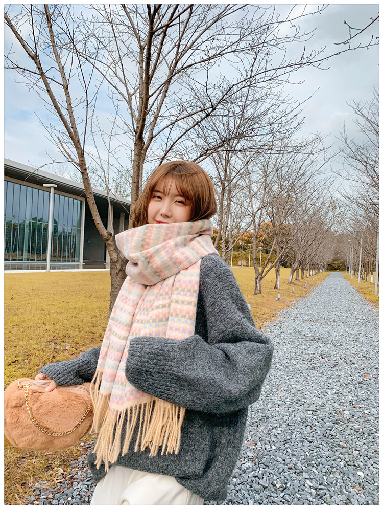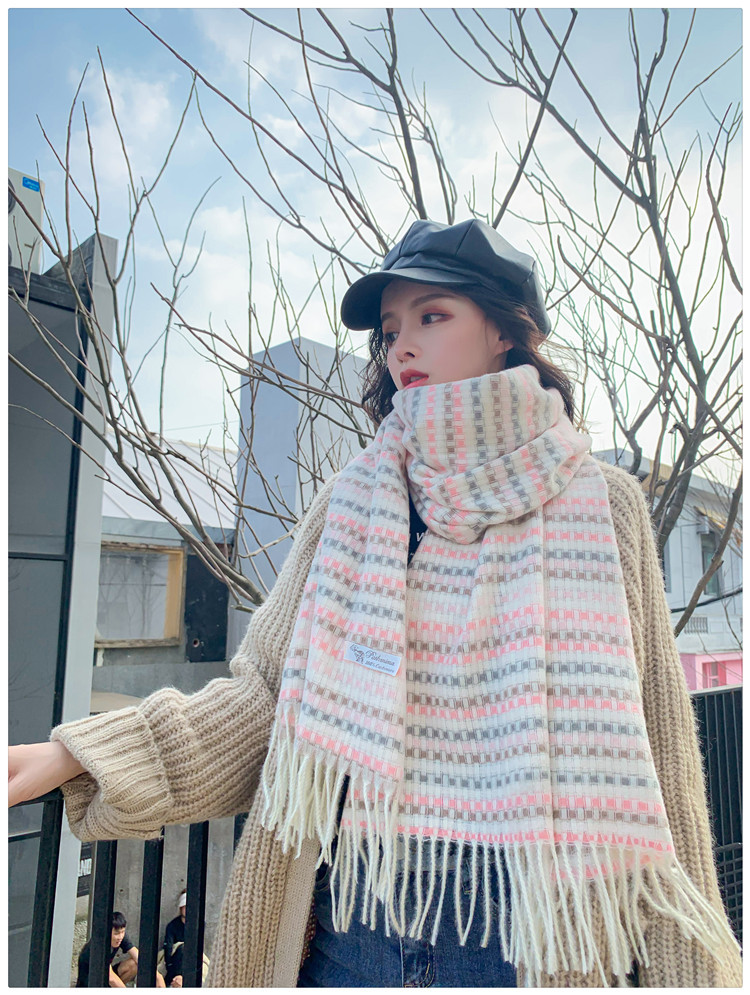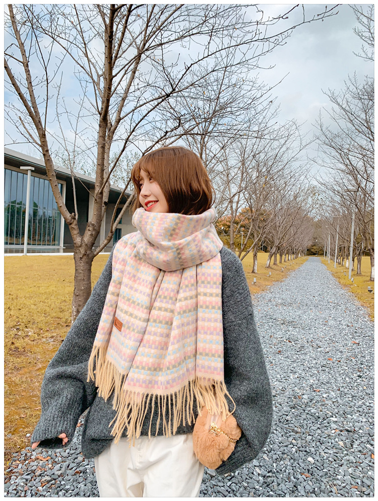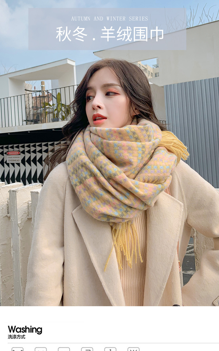 한국 스타일 샤넬 스타일 격자 무늬 스카프 여자의 겨울 학생의 모든 일치 숄 두꺼운 스카프 귀여운 가리 하트 넥 세트스토어 가기
