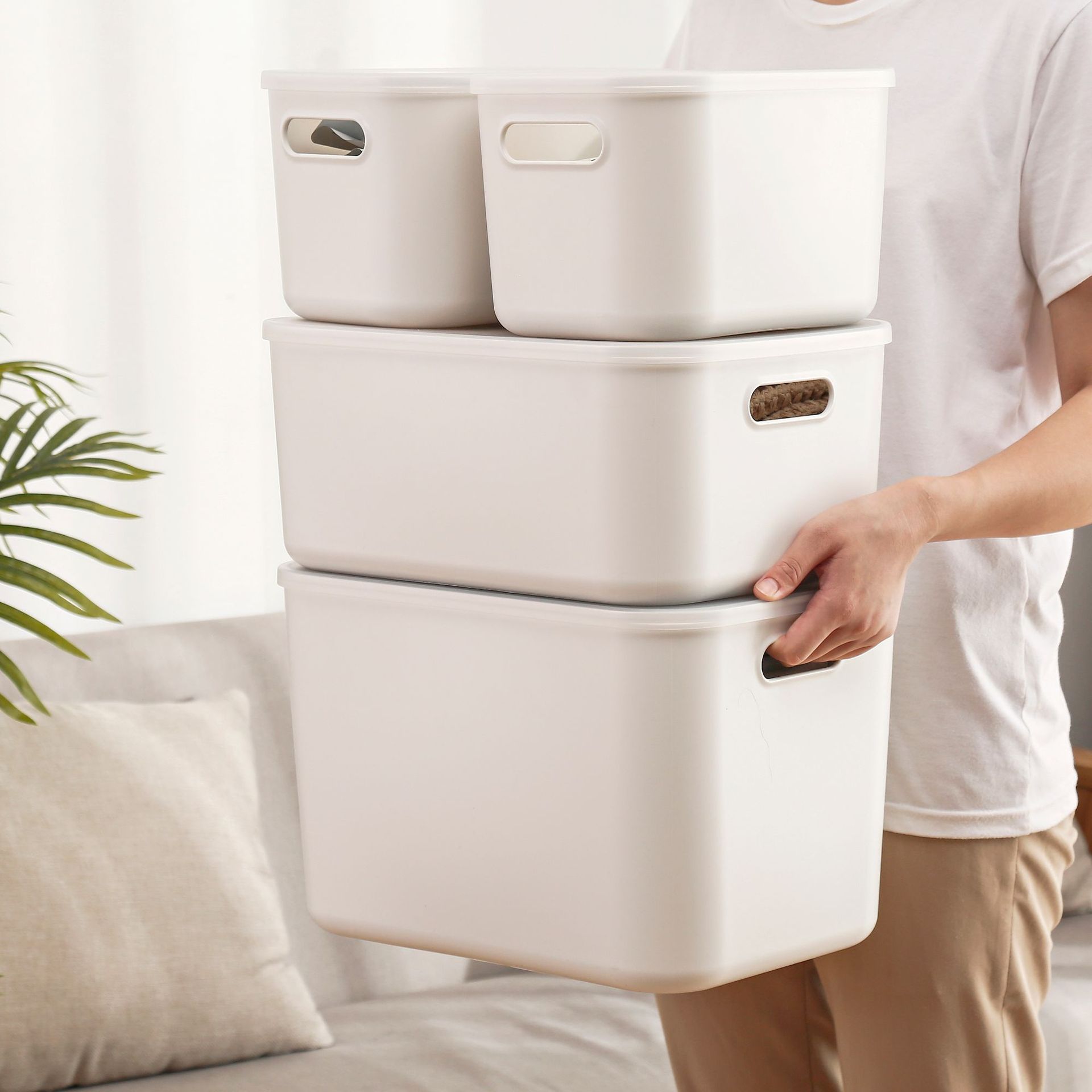• 24L 뚜껑이있는 흰색 큰 바구니 [스티커 없음]