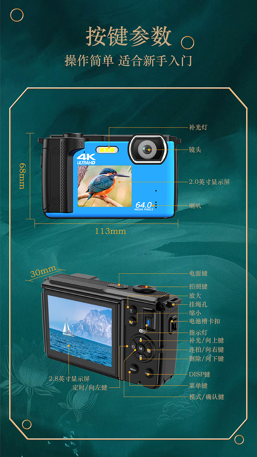 4K HD 디지털 카메라 보급형 학생 파티 캠퍼스 사진 레트로 소형 카메라 고화질 카메라 도매
