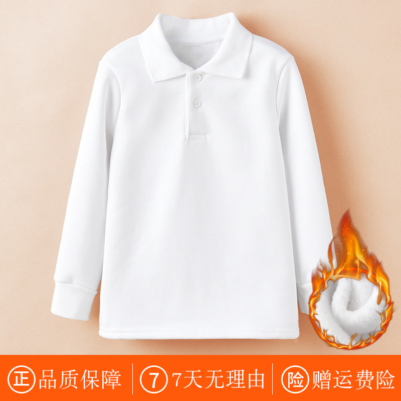 아동용 벨벳 화이트 티셔츠 여아 겨울 화이트 베이스 셔츠 남아 초등학교 교복 폴로 셔츠 긴팔 탑스토어 가기