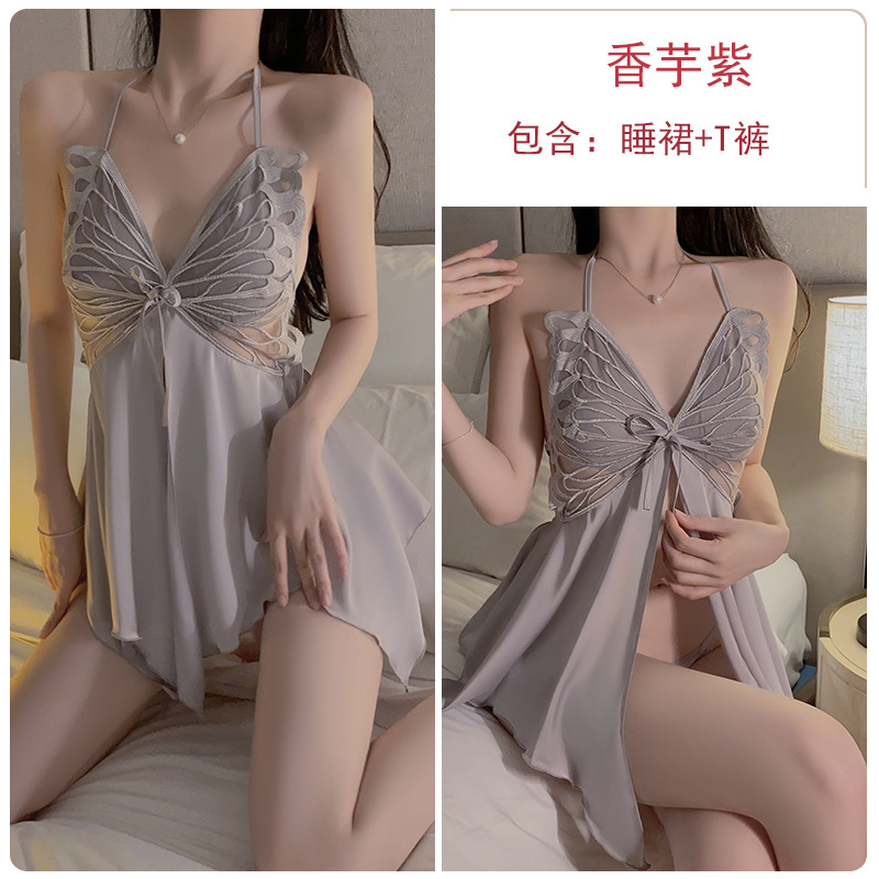 DZ Guiruo Satin Cardigan 레이스 보우, 가슴 패드 불규칙한 스커트 나이트 드레스 여자 홈 세트 3743