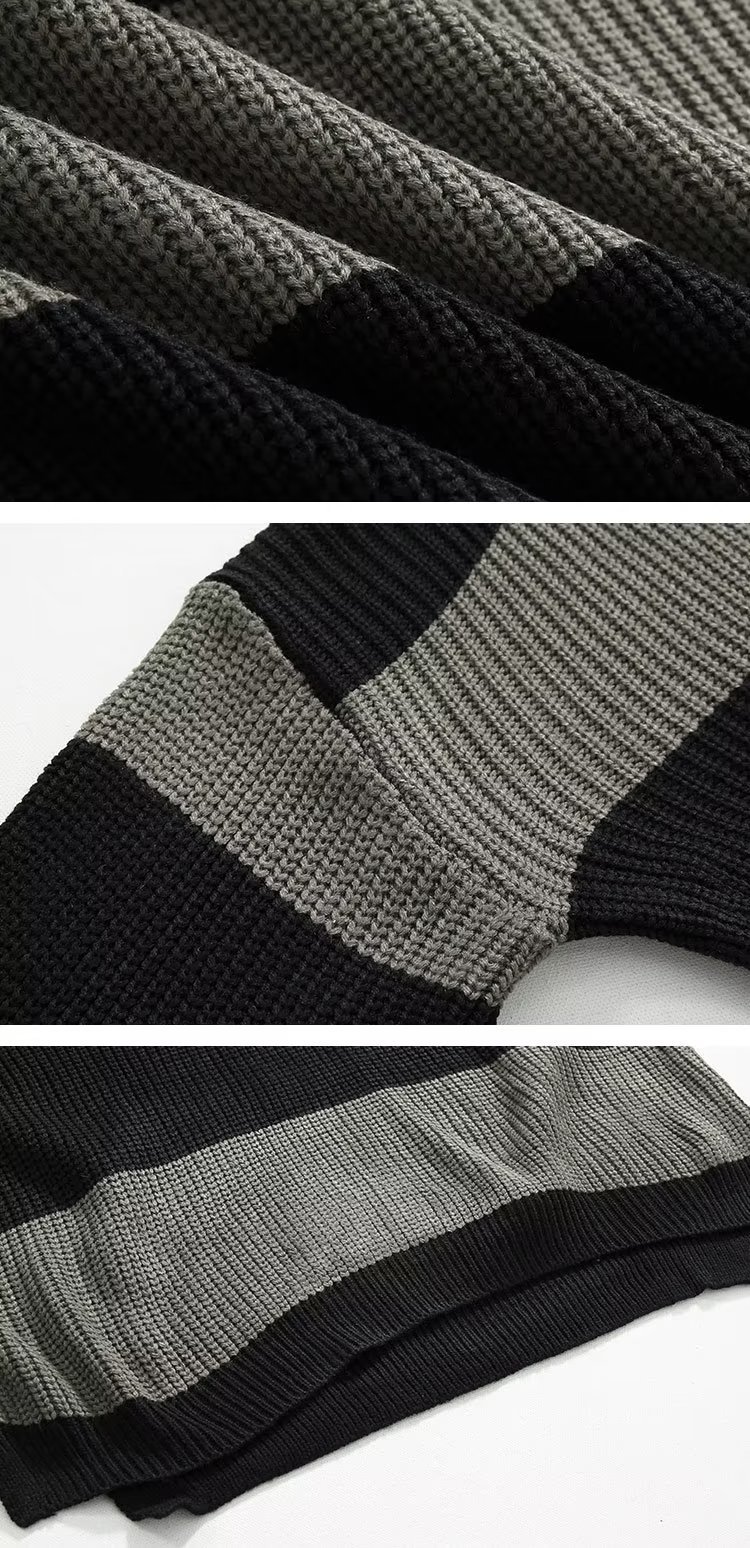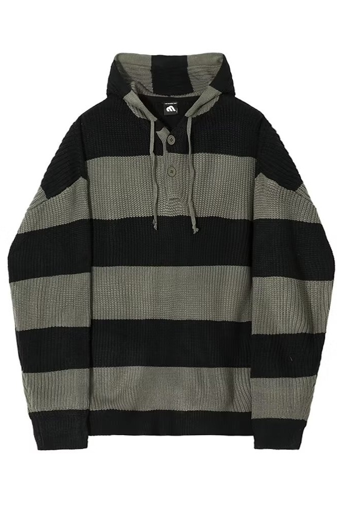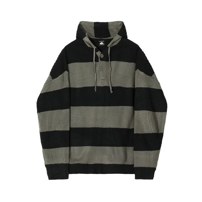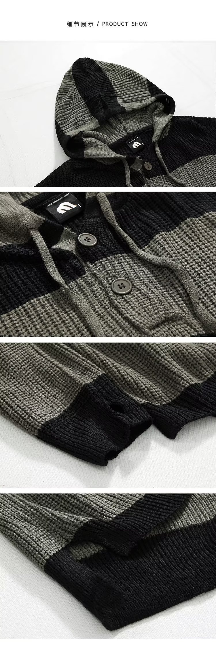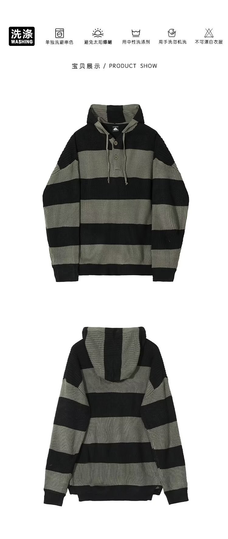 레트로 한국 스타일 스웨터 디자인 남성 후드 느슨한 미국 스타일 홍콩 스타일 게으른 스타일 스트라이프 스웨터