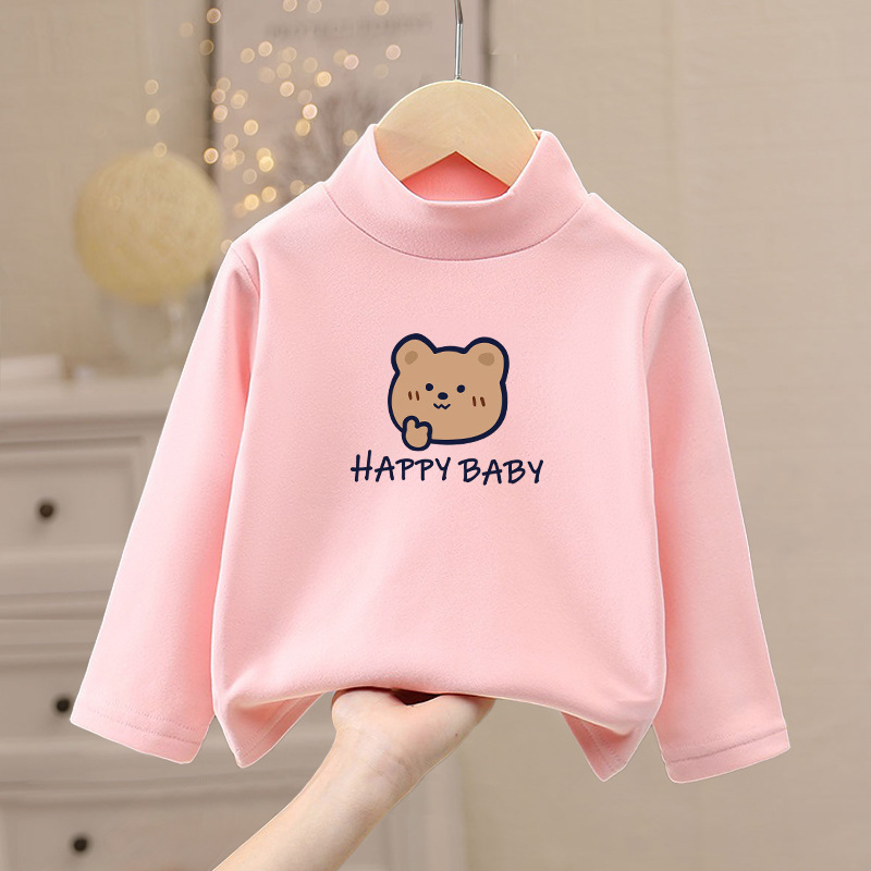 어린이 겨울 벨벳 열 속옷 베이스 레이어 셔츠 여아 가을 옷 싱글 피스 탑 어린이 하프 하이 칼라 아기 t스토어 가기