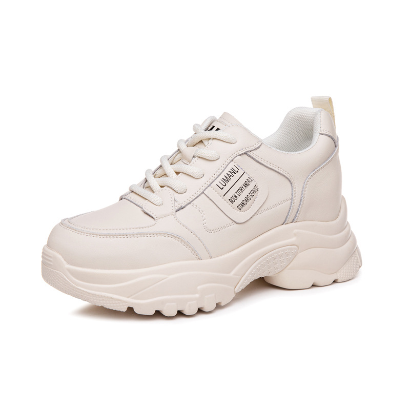 가을 2023 새로운 정품 가죽 두꺼운 밑창 올 매치 여성용 하이스트 경량 캐주얼 올매치 슬림핏 아빠 신발스토어 가기