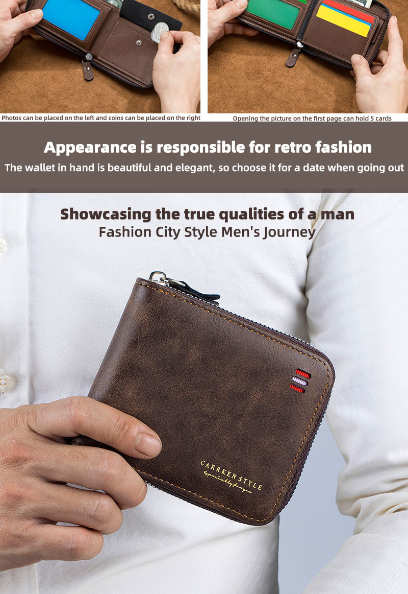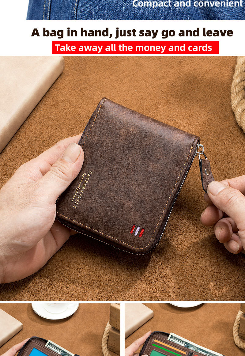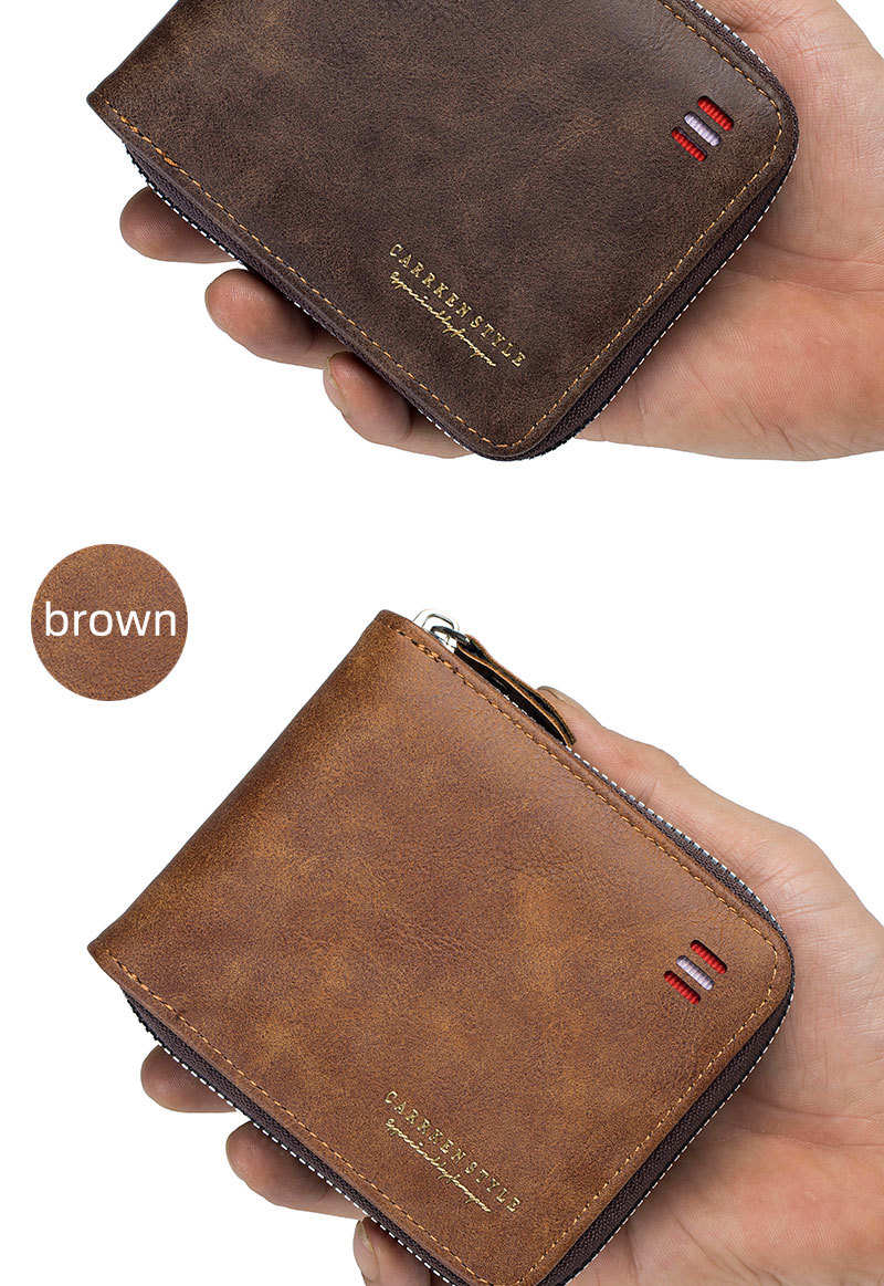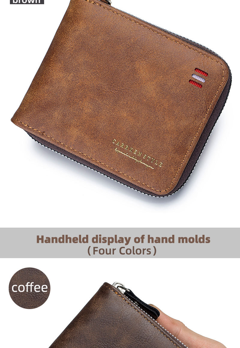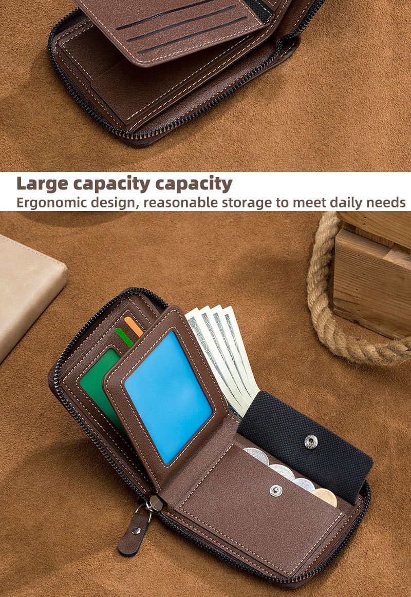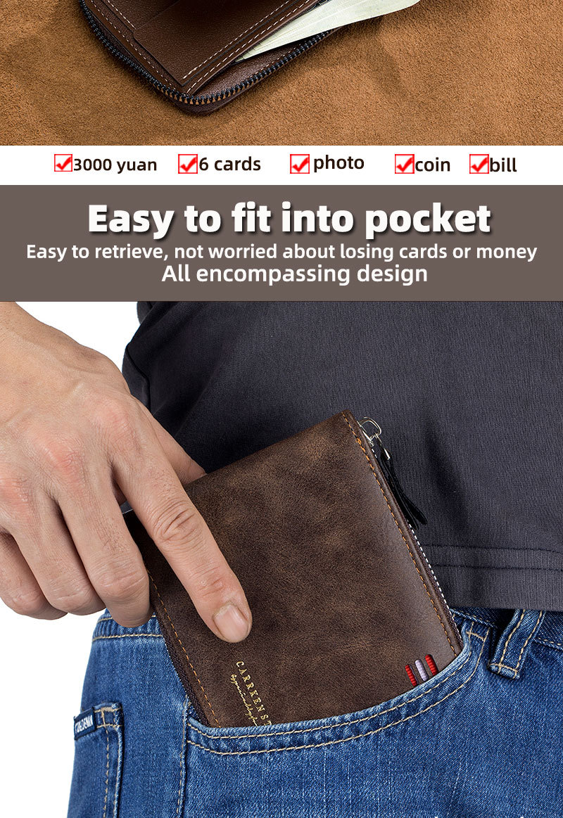 남자 지갑 짧은 2024 새로운 단색 청소년 간단한 트라이 폴드 지갑 다기능 학생 지퍼 동전 지갑스토어 가기