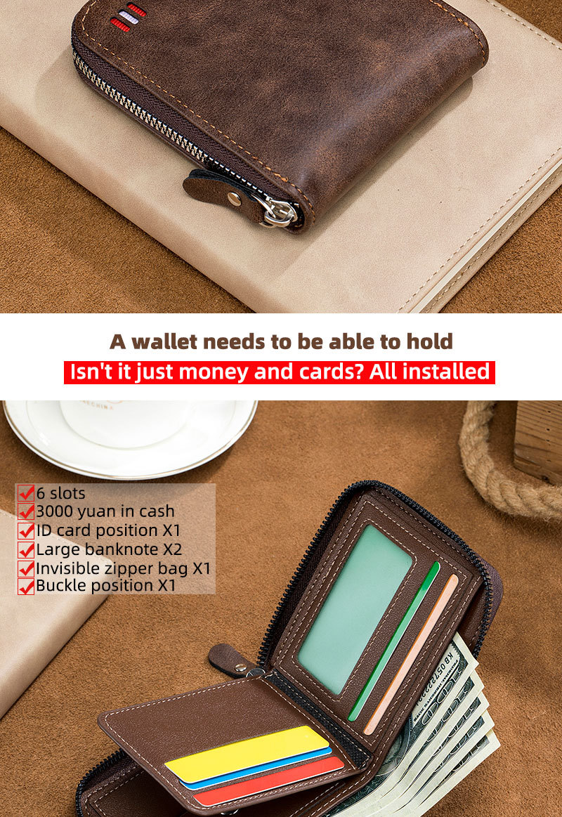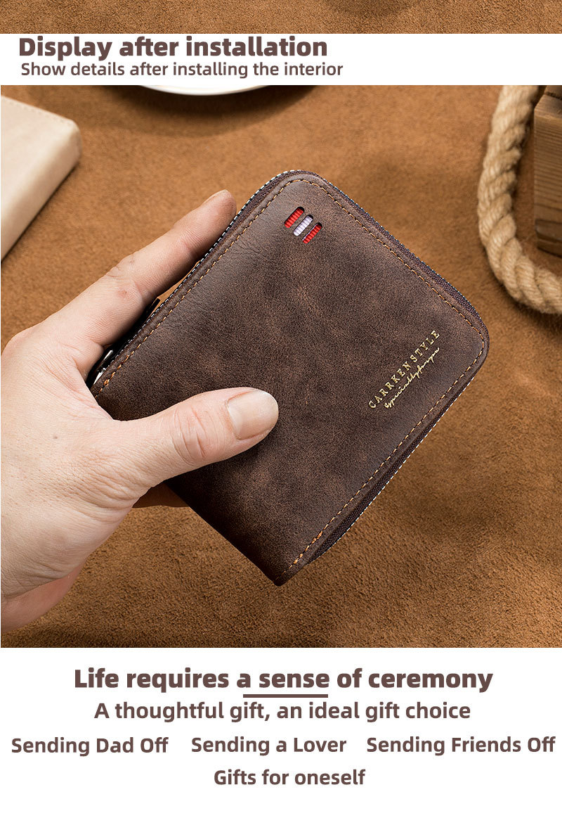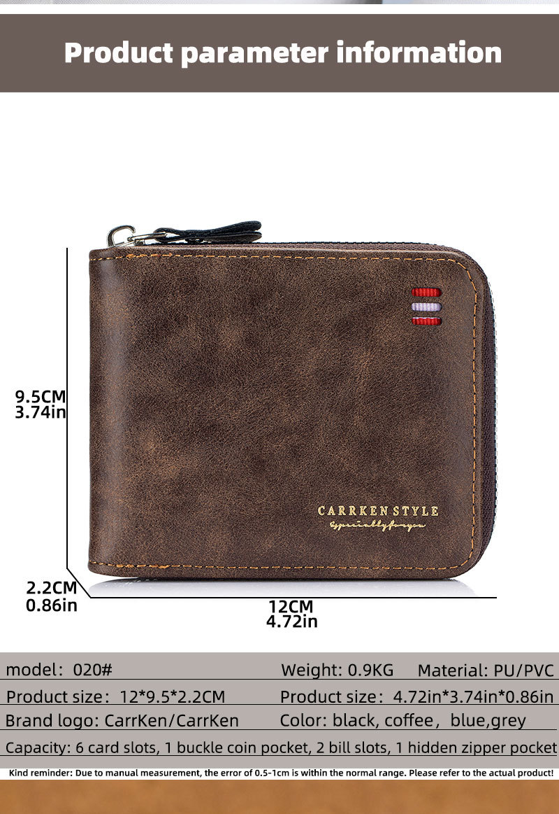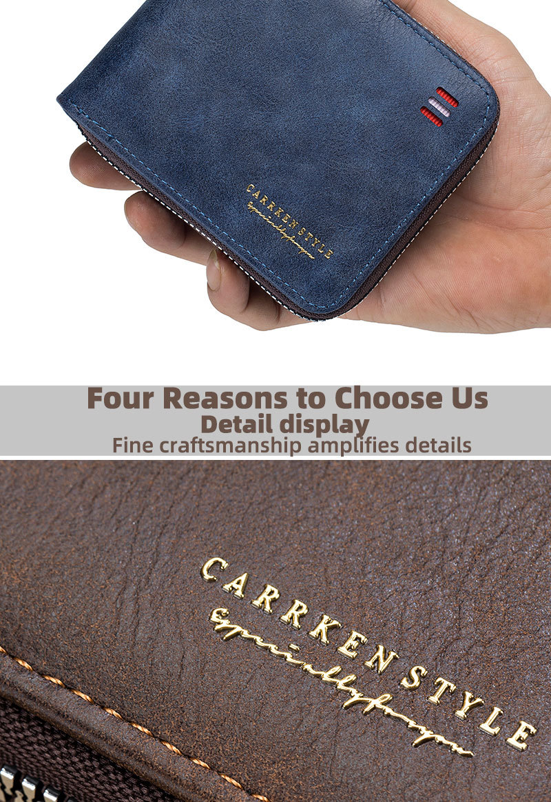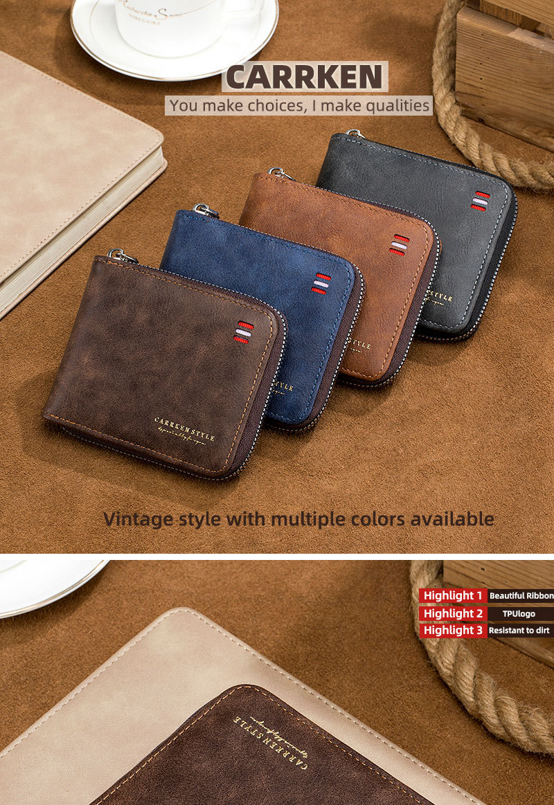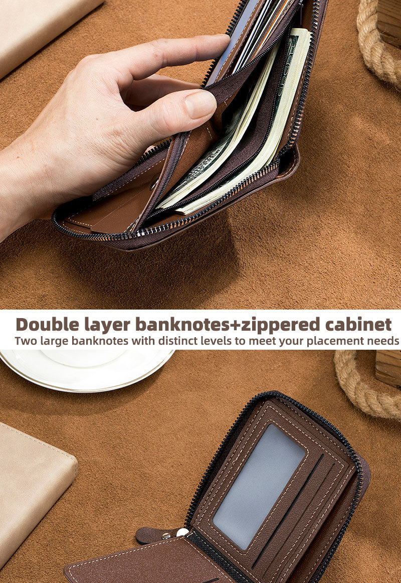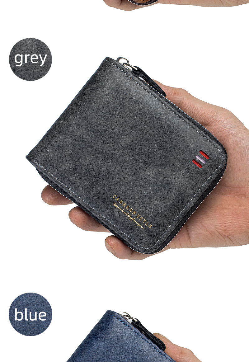 남자 지갑 짧은 2024 새로운 단색 청소년 간단한 트라이 폴드 지갑 다기능 학생 지퍼 동전 지갑스토어 가기