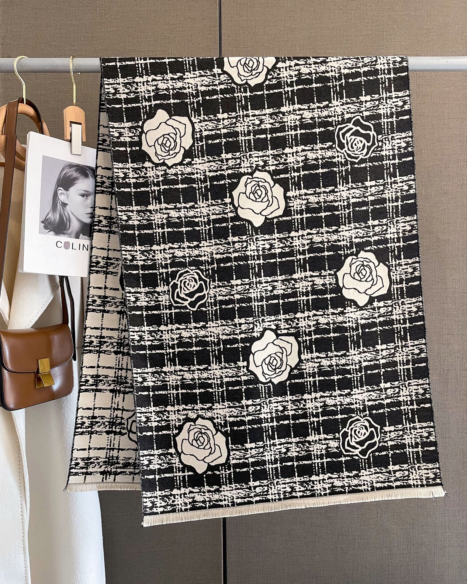 한국식 동백 모조 캐시미어 스카프 여성용 겨울 따뜻한 두꺼운 양면 학생 스카프 추위를 막아주는 양면 대형 숄스토어 가기