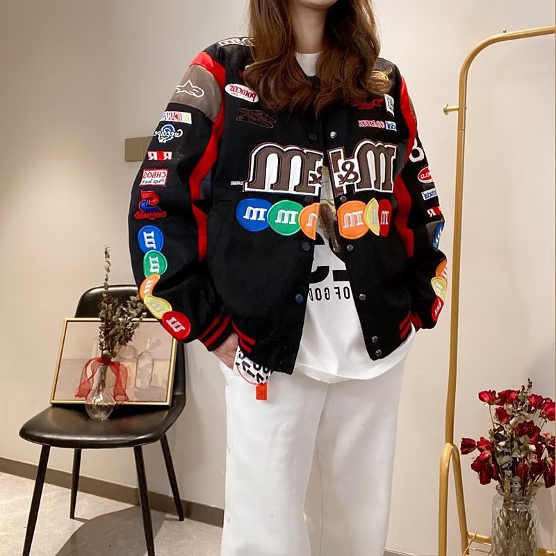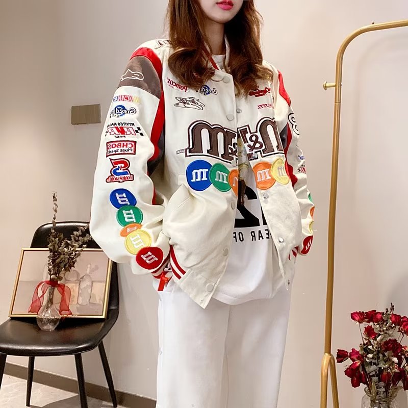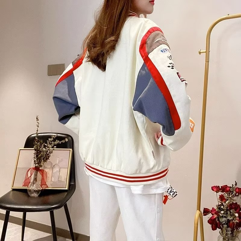 바느질 야구 세트 코트 여자의 2023 새로운 봄과 가을 미국 빈티지 유행 자수 커플 재킷 탑스토어 가기