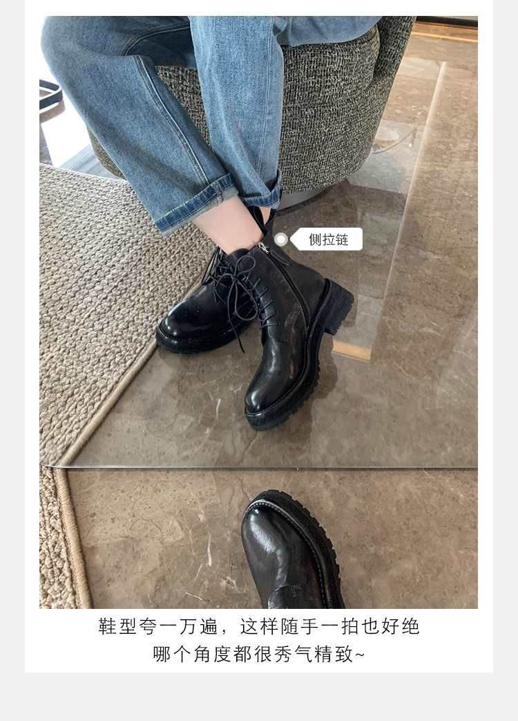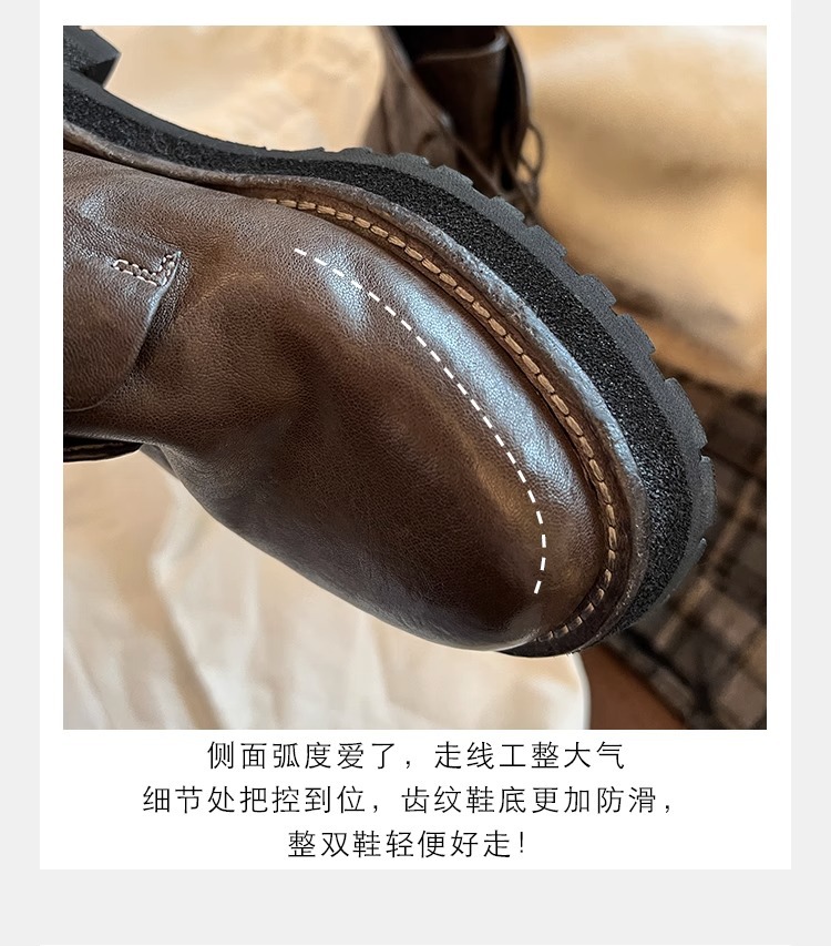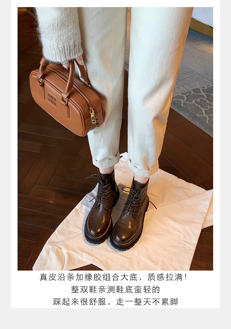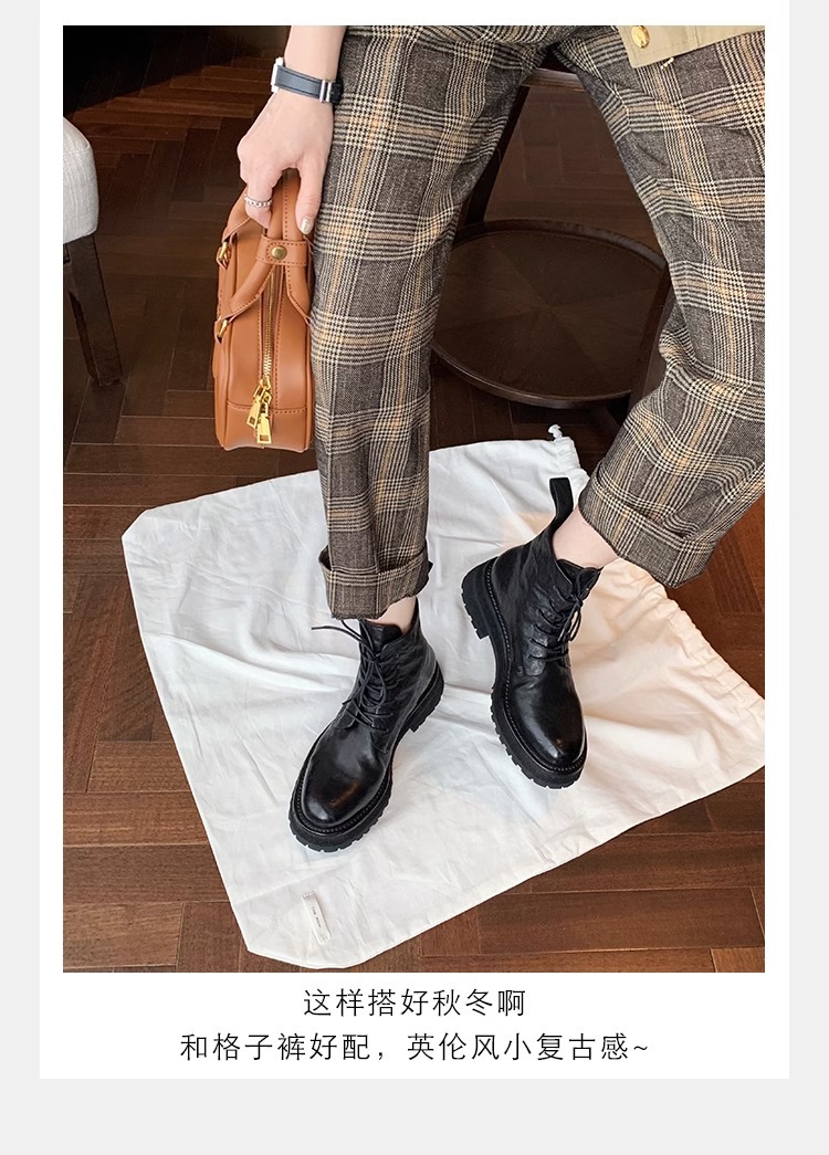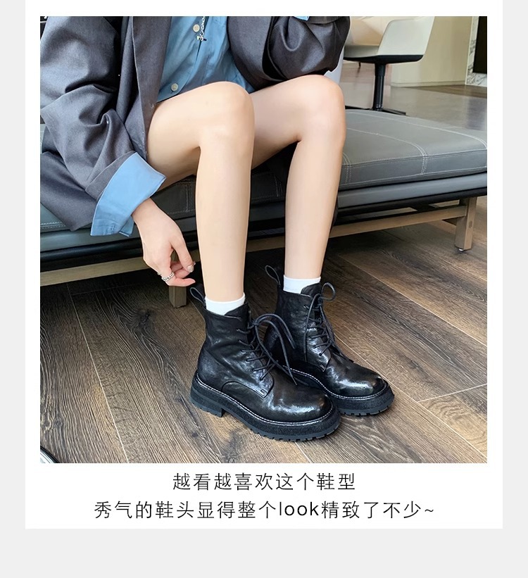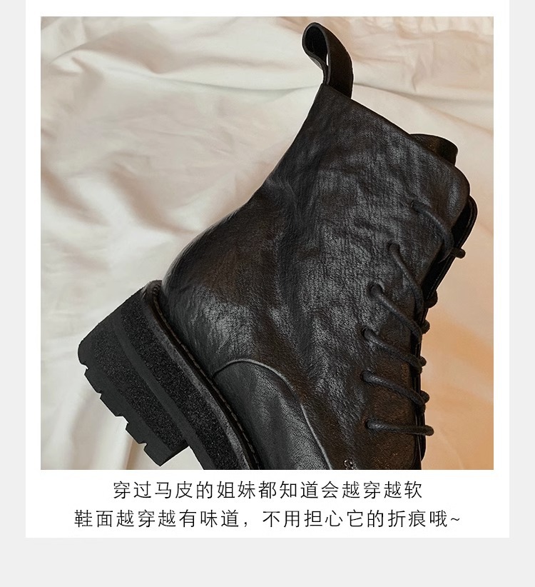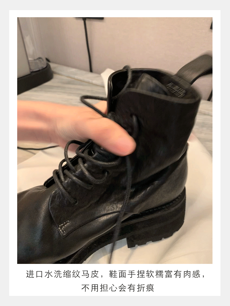 고급 센스 소가죽 에디션 ~ 포도 엄마 같은 세탁 수축 말 가죽 라운드 헤드 레이스 업 두꺼운 밑창 마틴 부츠 여성스토어 가기
