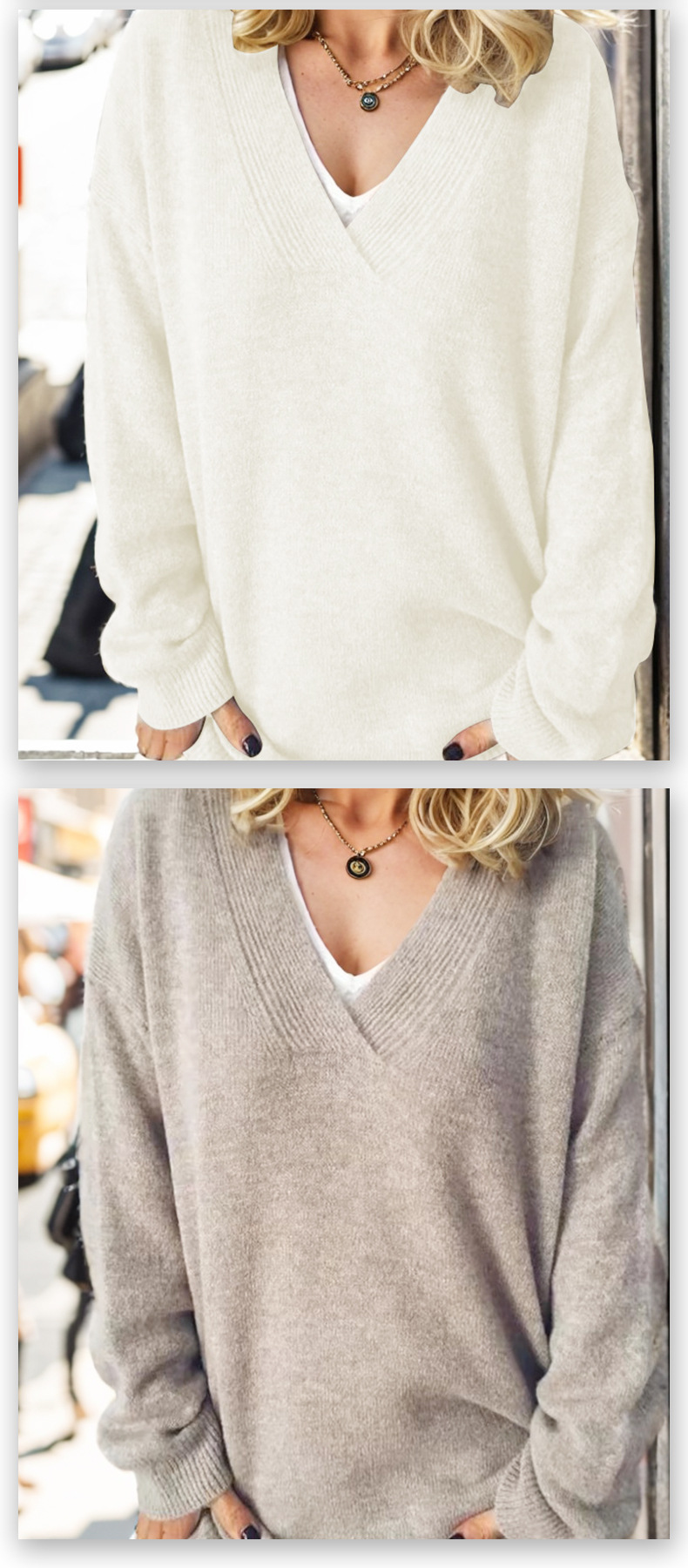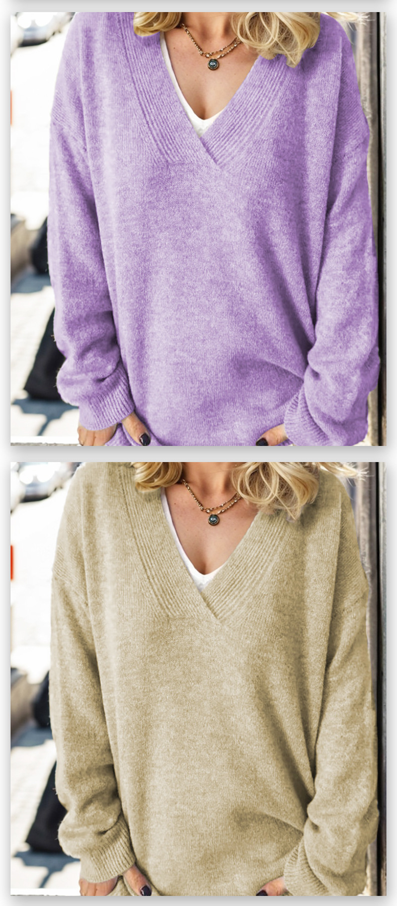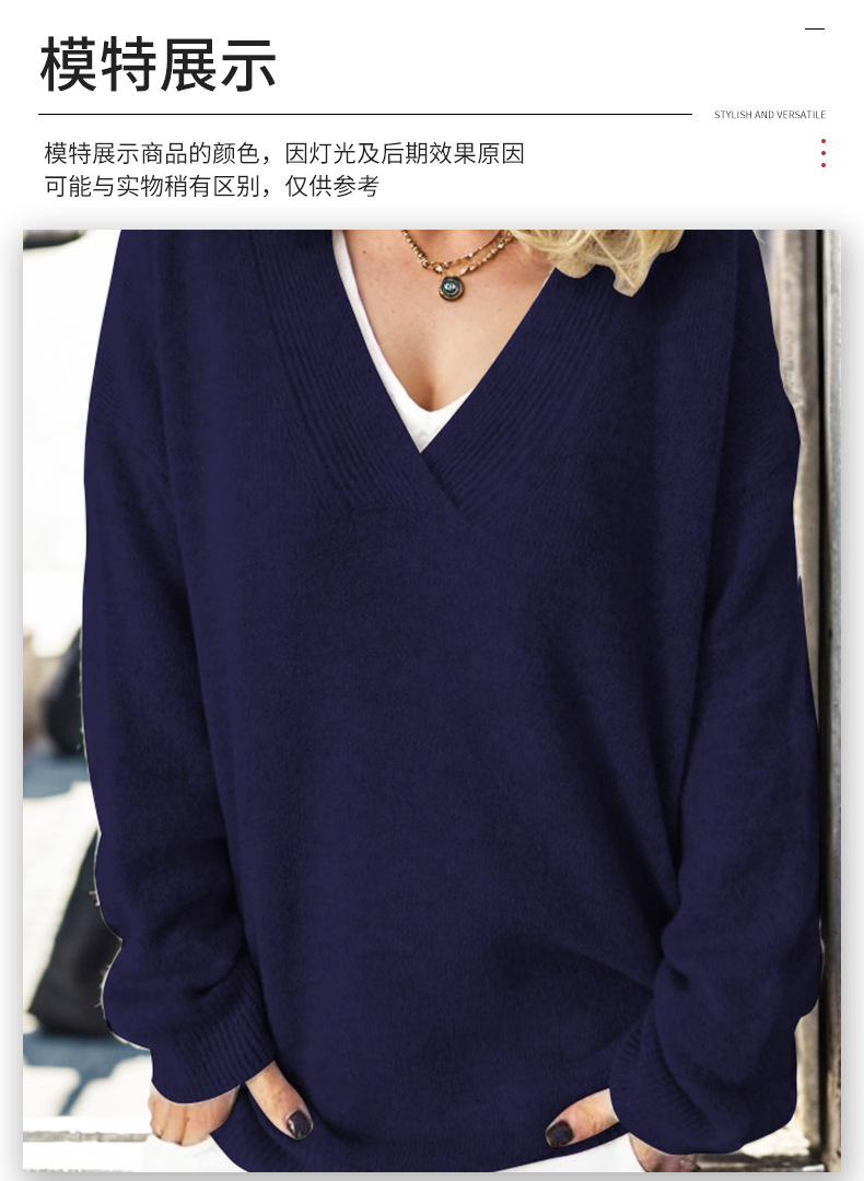 크로스 보더 아마존 니트 탑 여성용 V-넥 아우터 스웨터 가을과 겨울 긴 소매 단색 풀오버 모든 매치 슬리밍스토어 가기