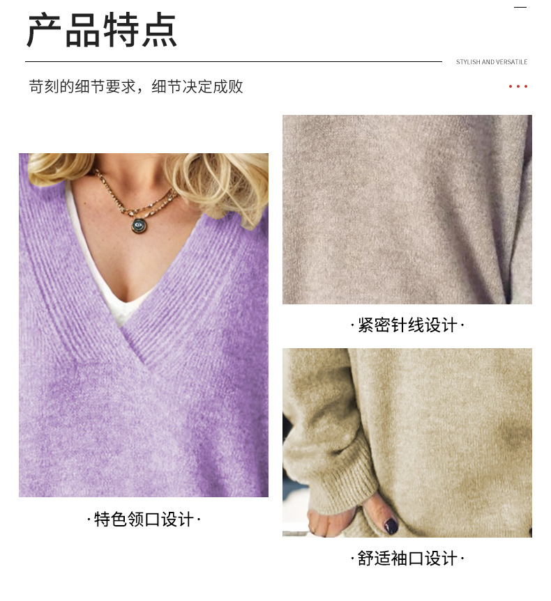 크로스 보더 아마존 니트 탑 여성용 V-넥 아우터 스웨터 가을과 겨울 긴 소매 단색 풀오버 모든 매치 슬리밍