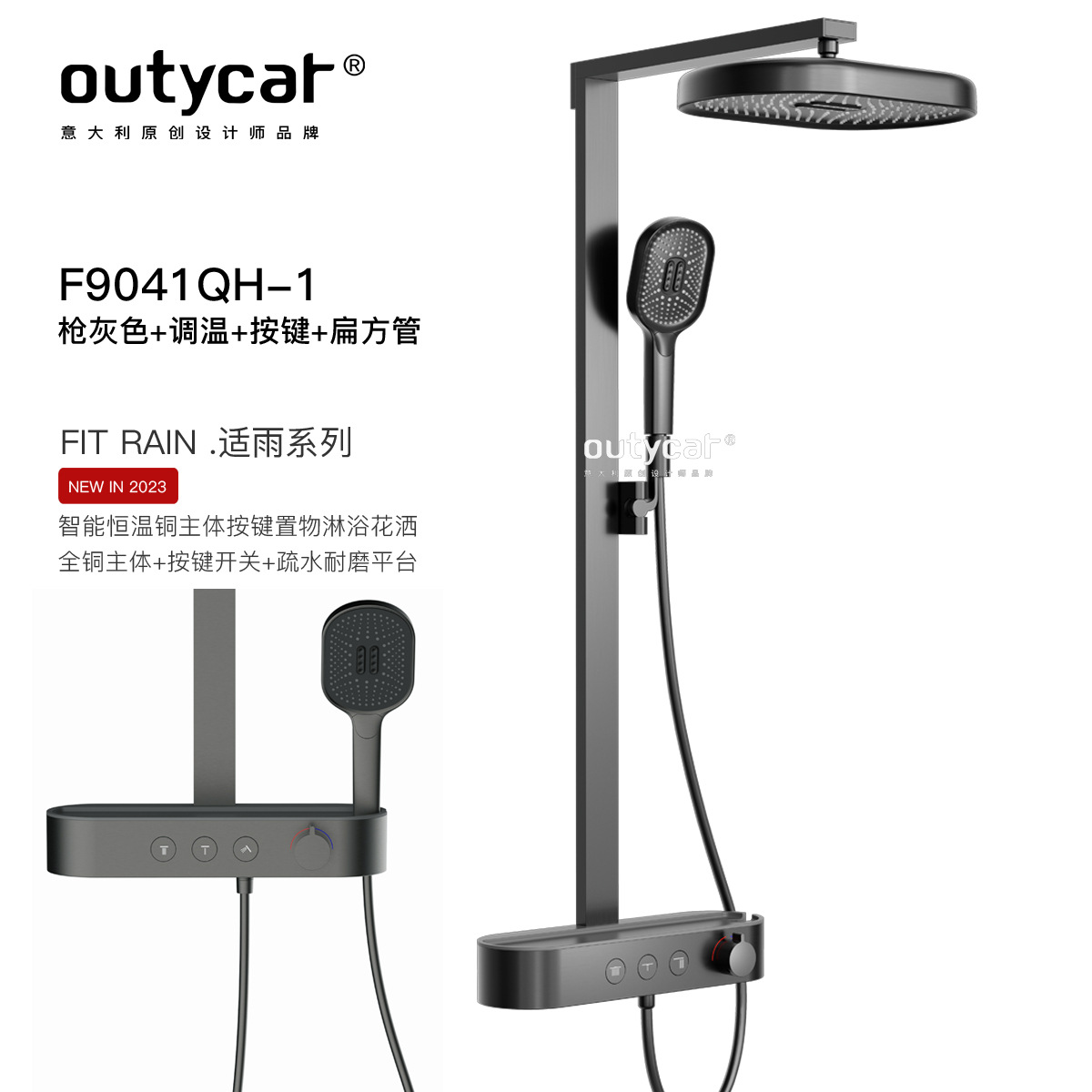 • F9041QH-1-gun 회색 온도 조절 버튼 + 평면 사각 튜브