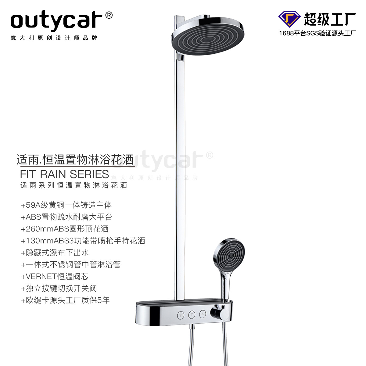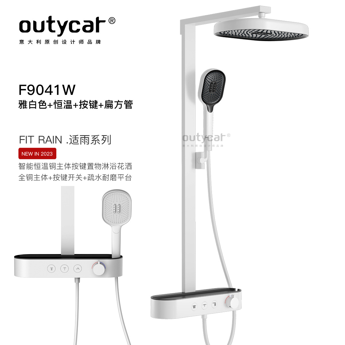 오티카 온도조절 샤워 세트 구리 재질 가정용 핸드헬드 샤워기 화이트 버튼 선반 샤워기