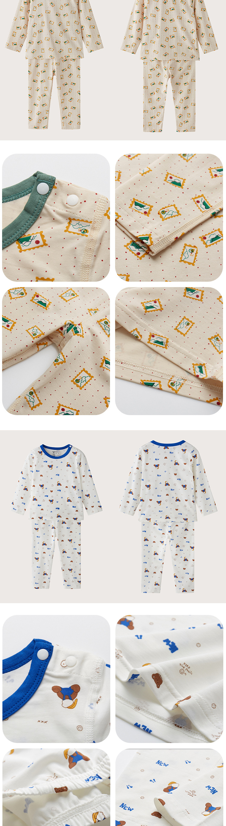 2025 가을 겨울 아동용 잠옷 세트 면 오프숄더 아기 가을옷 가을바지 남녀 아동용 보온 속옷 홈웨어스토어 가기