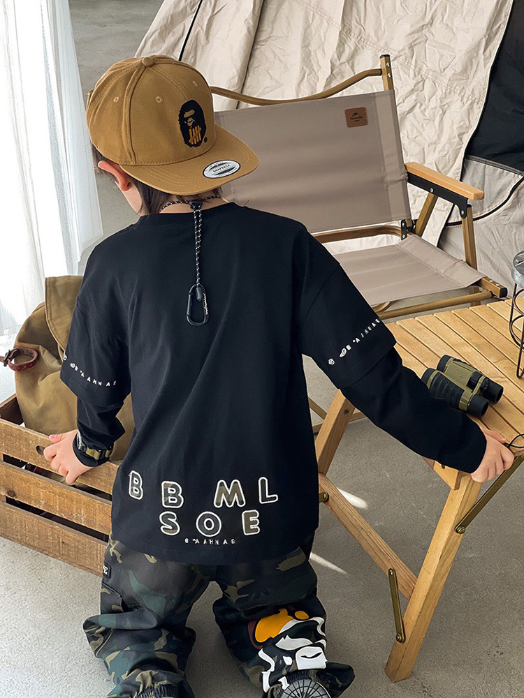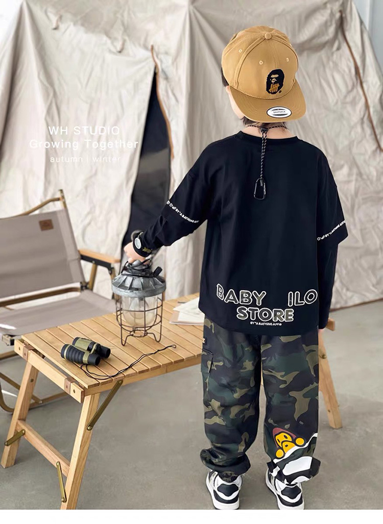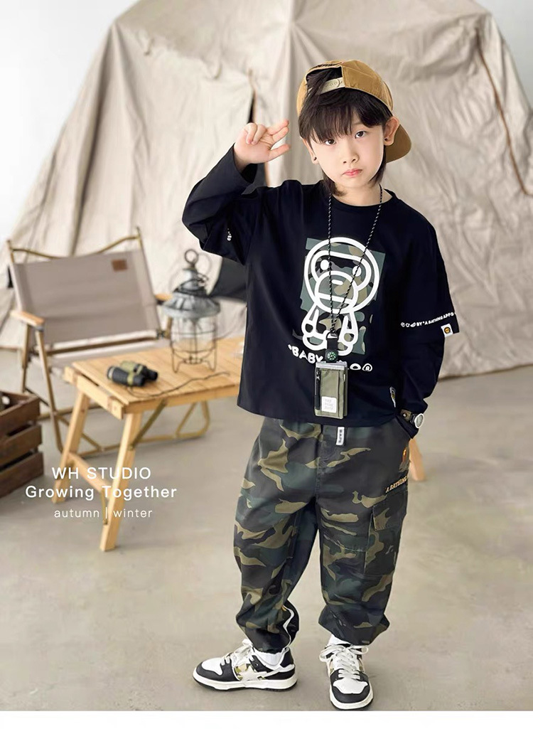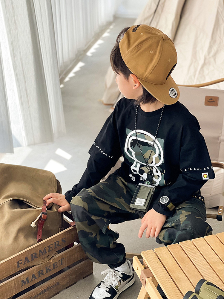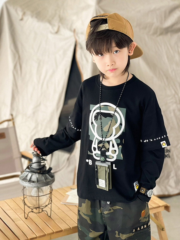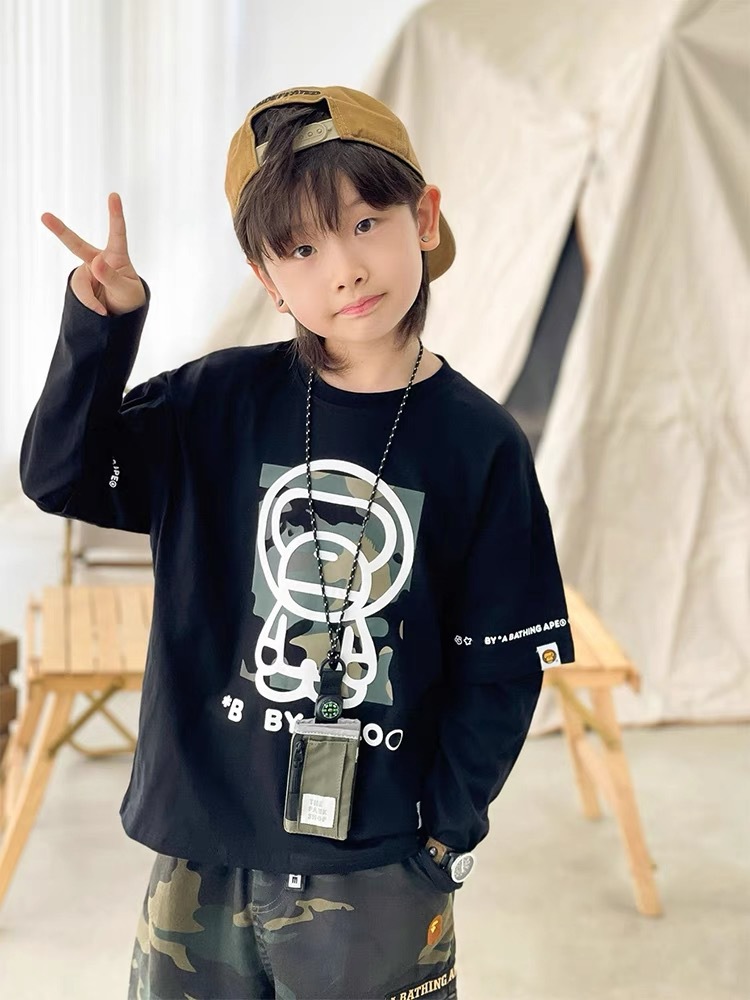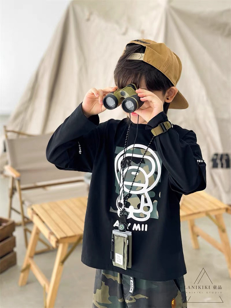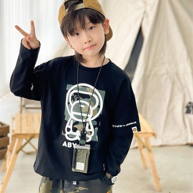2025 가을 트렌디 브랜드 일본풍 투피스 남아 긴팔 티셔츠 카모 원숭이 어린이 이너웨어 만화 상의스토어 가기