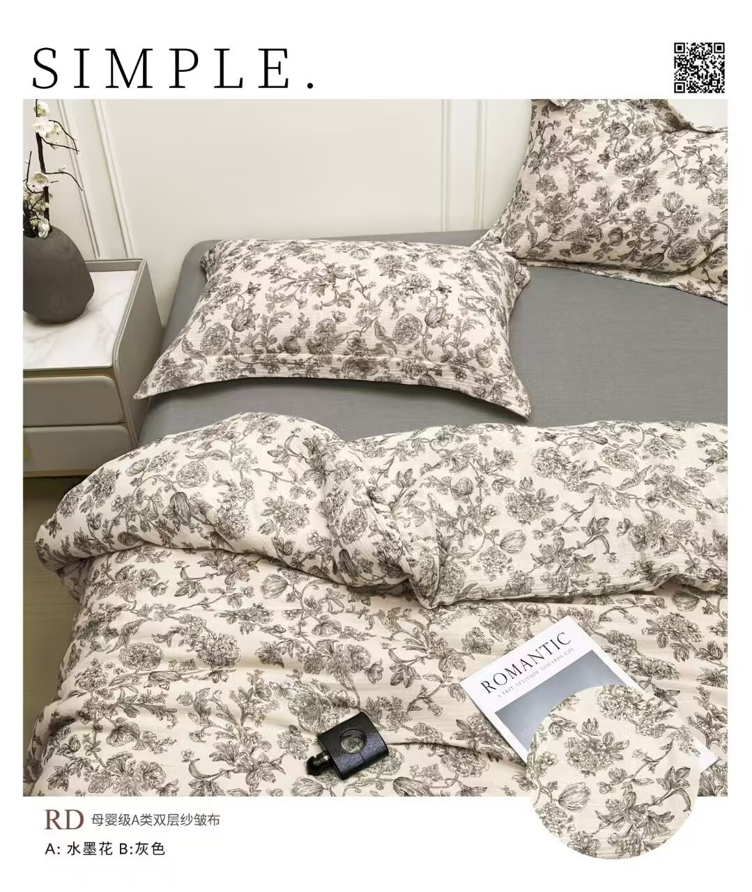 自有工厂生产,各个环节始自源头,量大价格从优,欢迎咨询!支持成品定制!如需更多花型,可随时联系客服!全棉复古双层绉纱面料详情_01